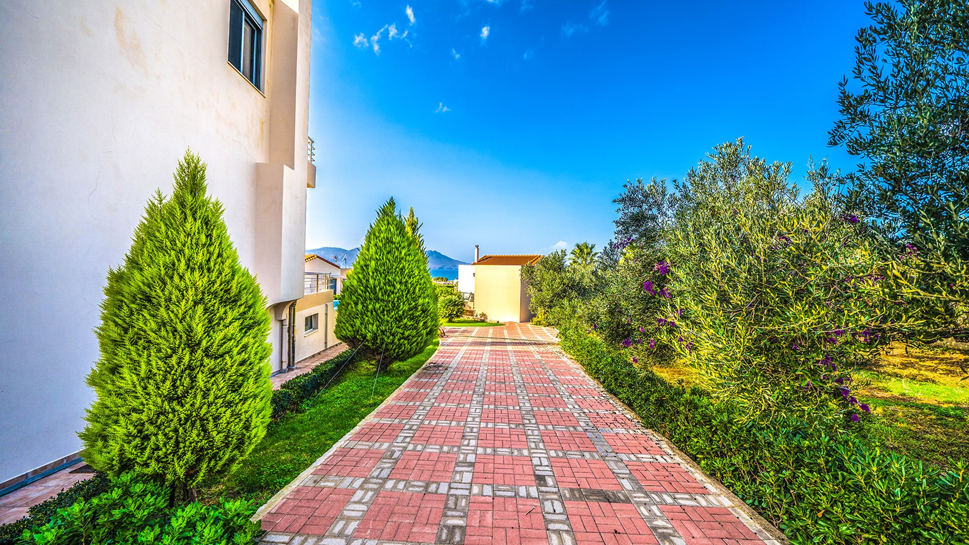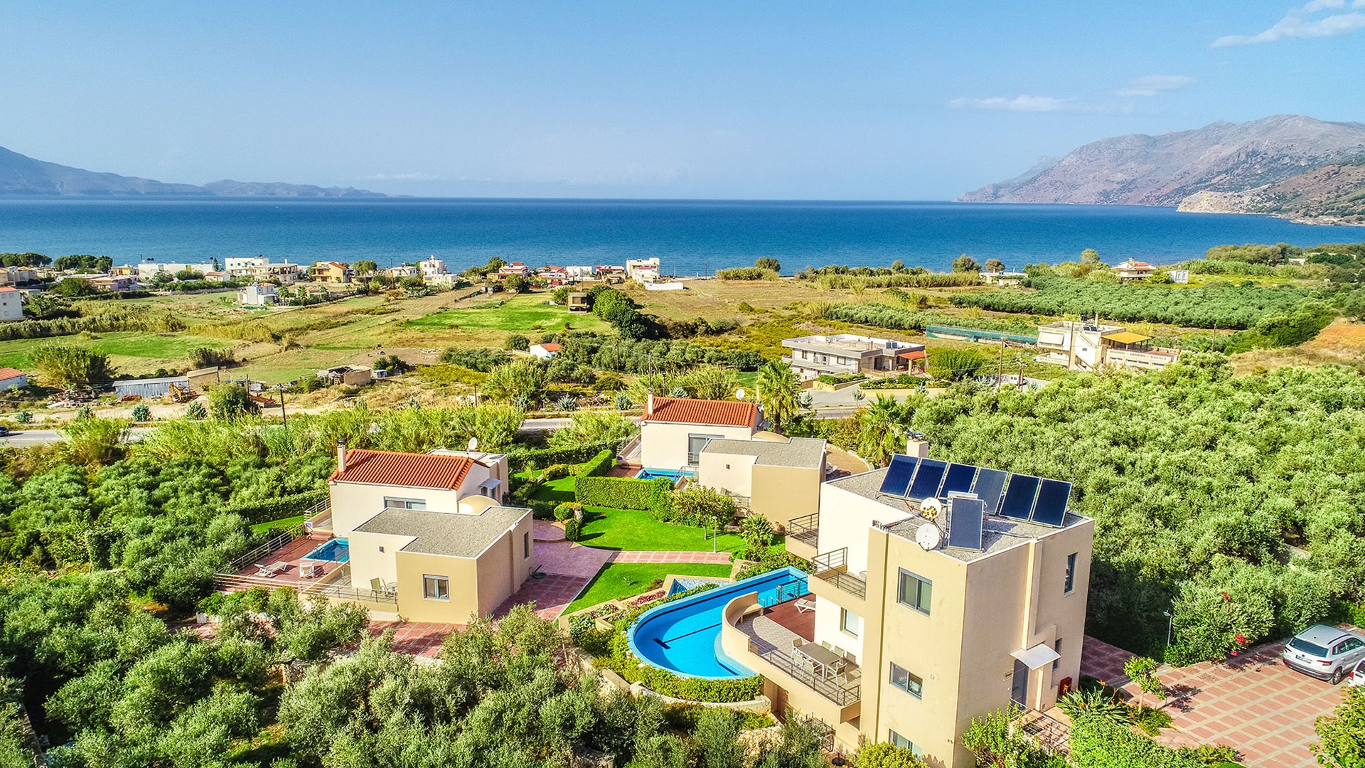 The capital Chania City is connected with all major cities of Crete by the national road, the nearest harbor is Souda (5 km) and the nearest airport is Chania Daskalogiannis Airport with code name CHQ (10 km). Heraklion International airport with the code name HER is also convenient (140km).