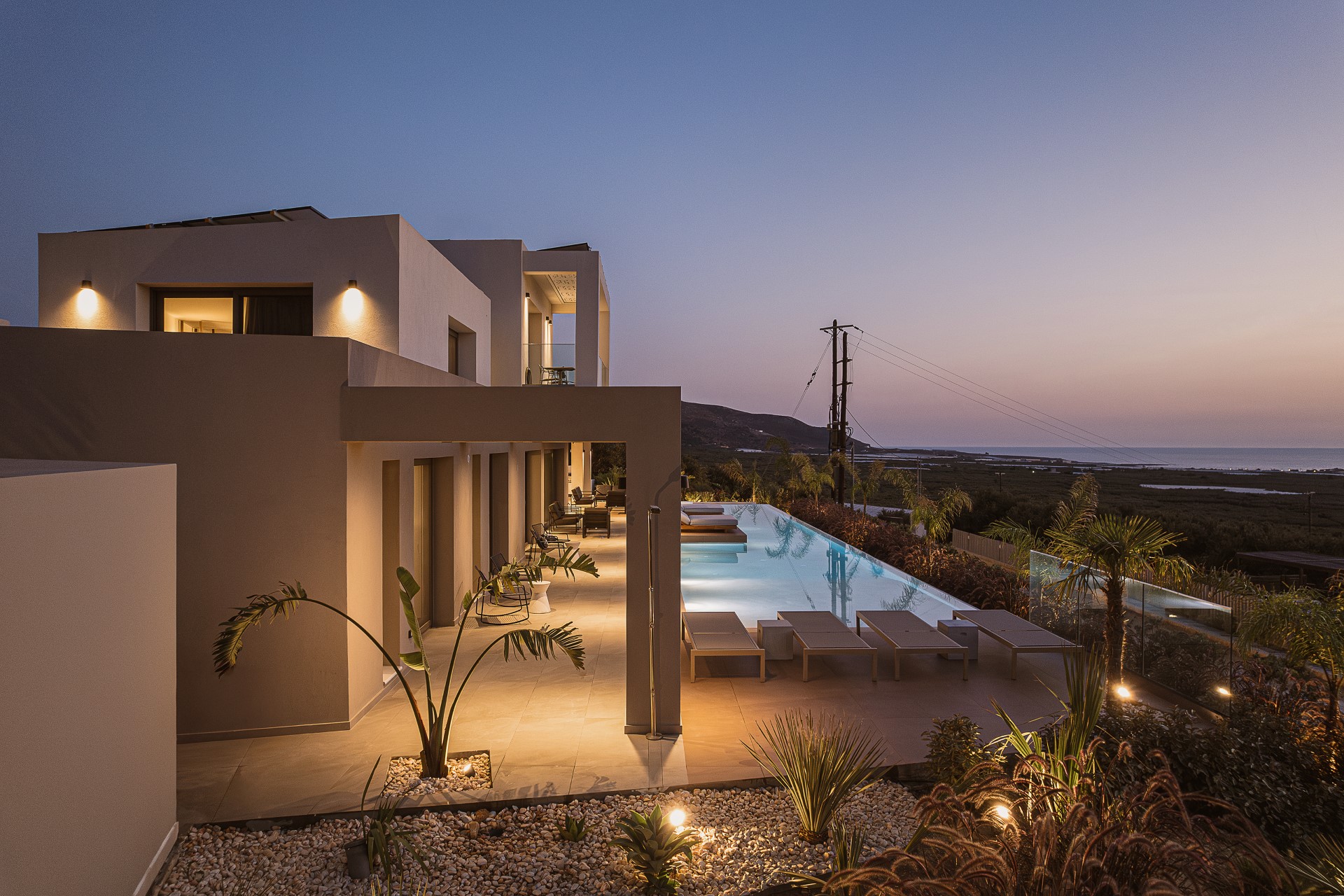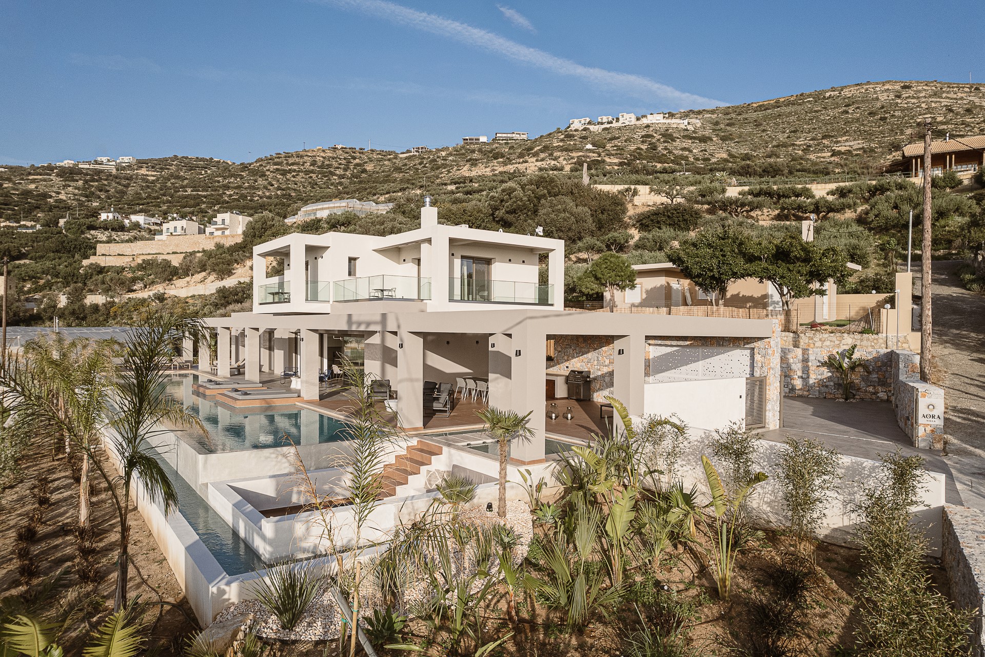 Architectural Seaview Villa is located very close to FALASSARNA BEACH. The villa spans 260 SQ.M. across TWO LEVELS and has been designed to combine CONTEMPORARY ARCHITECTURE with comfort and functionality.