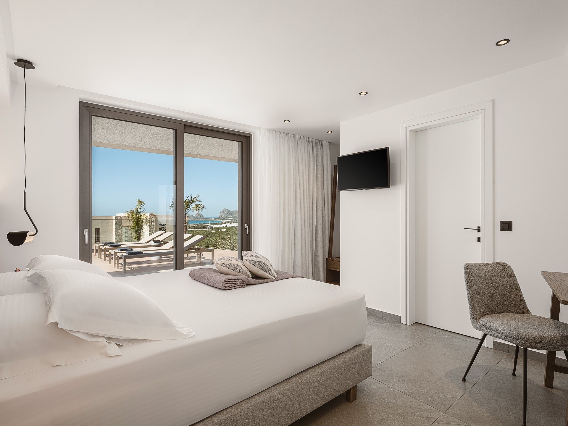 Architectural Seaview Villa is a BRAND-NEW LUXURY VILLA near FALASSARNA BEACH, designed for comfort and contemporary living. Spanning 260 SQ.M. ON TWO LEVELS, it accommodates up to 10 GUESTS in FIVE EN-SUITE BEDROOMS. The villa features a BRIGHT OPEN-PLAN LIVING AREA, modern kitchen, and seamless indoor-outdoor flow. Outside, a 150 SQ.M. INFINITY POOL, landscaped gardens, BBQ and dining areas create an ideal setting for relaxed coastal living.