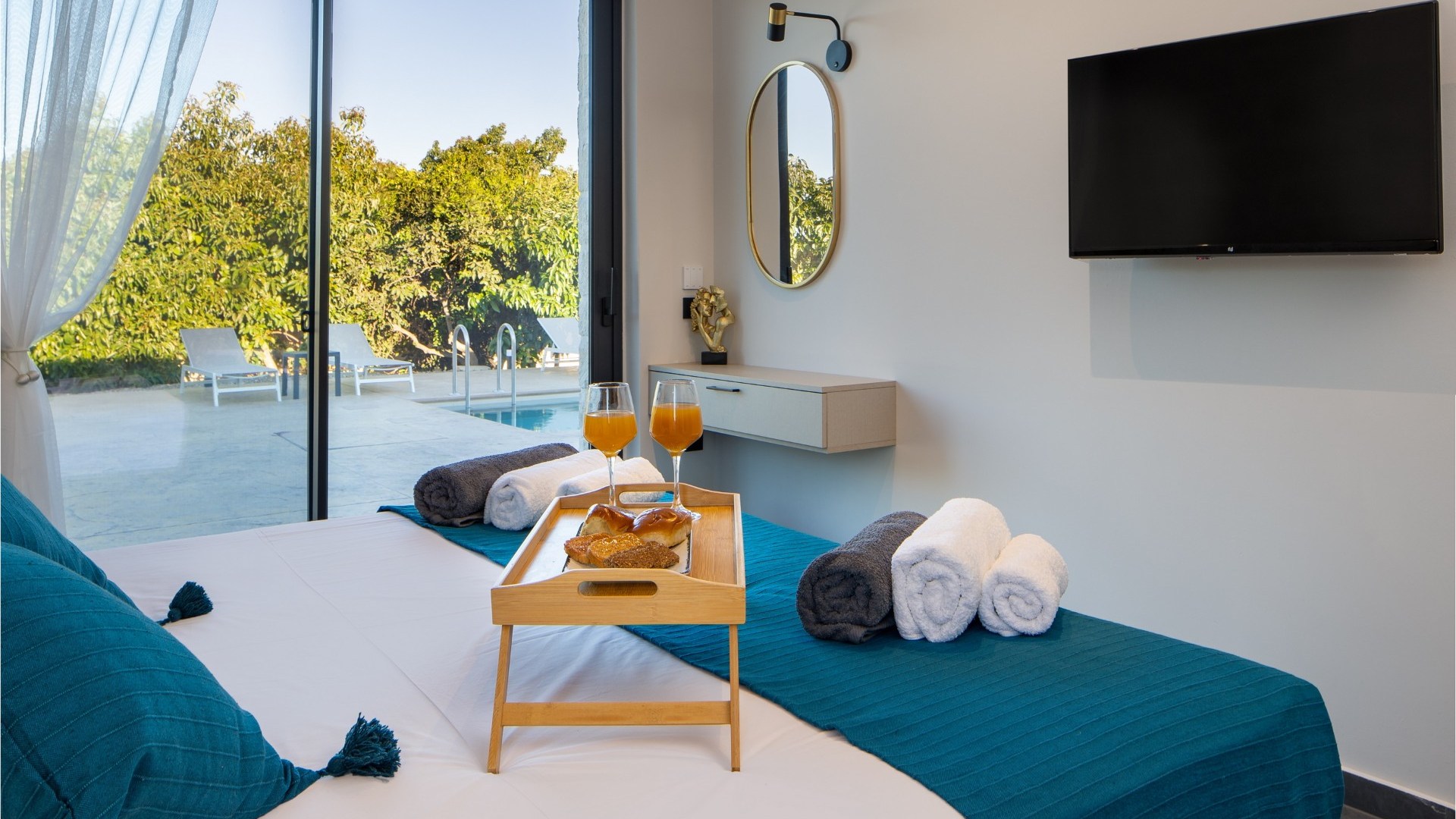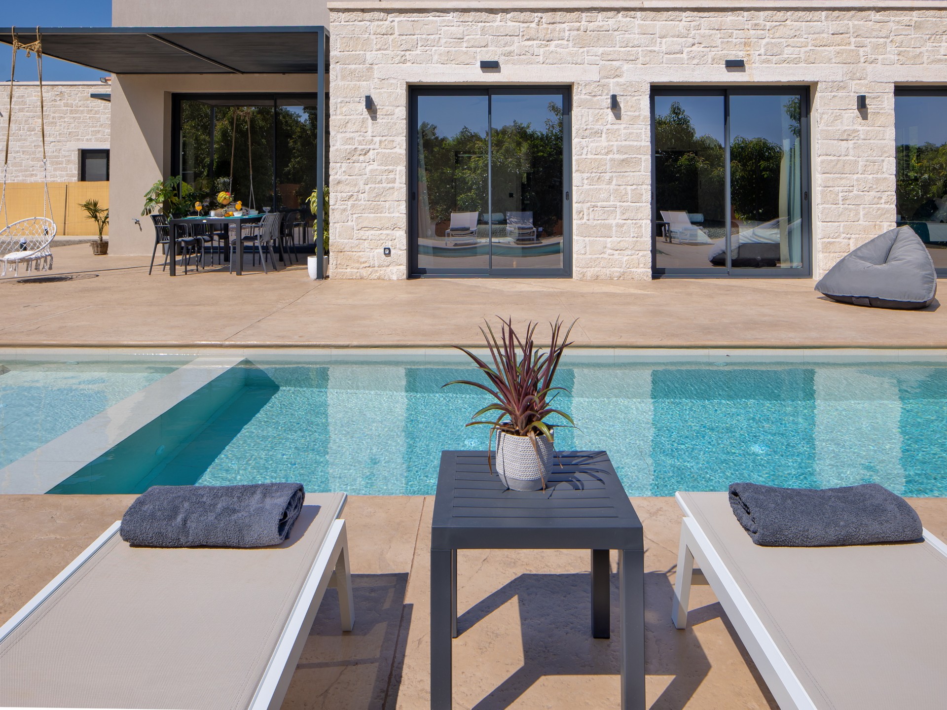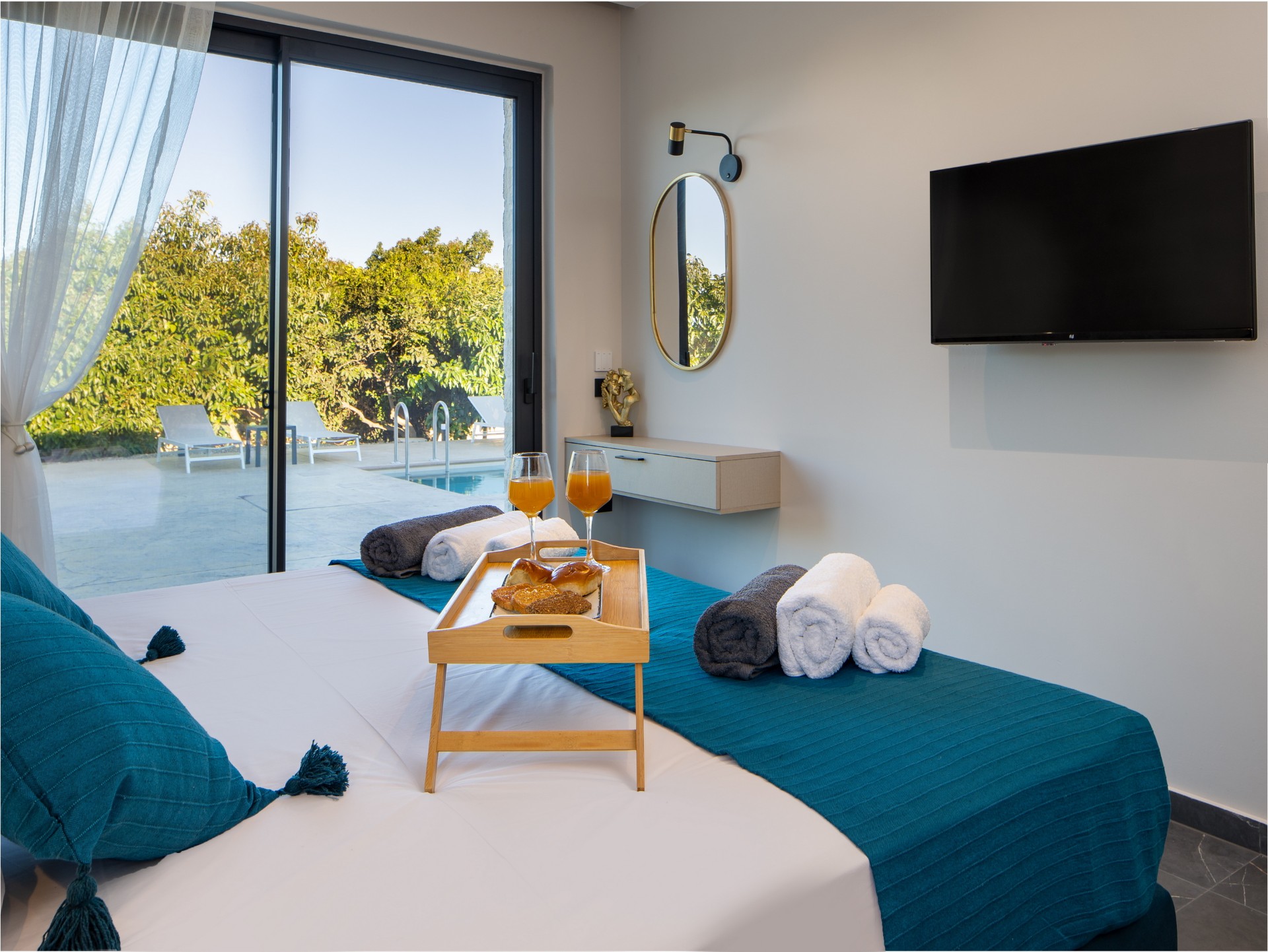 Discover the Aurora luxury villa surrounded by citrus groves and mountain views in the Cretan countryside. designed for comfort and style, it features three elegant bedrooms, spa-inspired bathrooms, a modern kitchen, and bright living spaces with direct access to the pool. outside, relax by your private swimming pool, enjoy the BBQ and shaded dining area, and experience the perfect blend of tranquility and modern luxury just a short drive from Chania city.