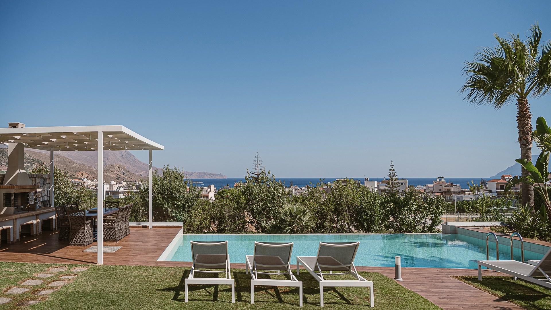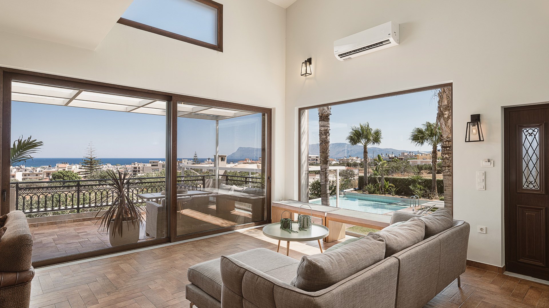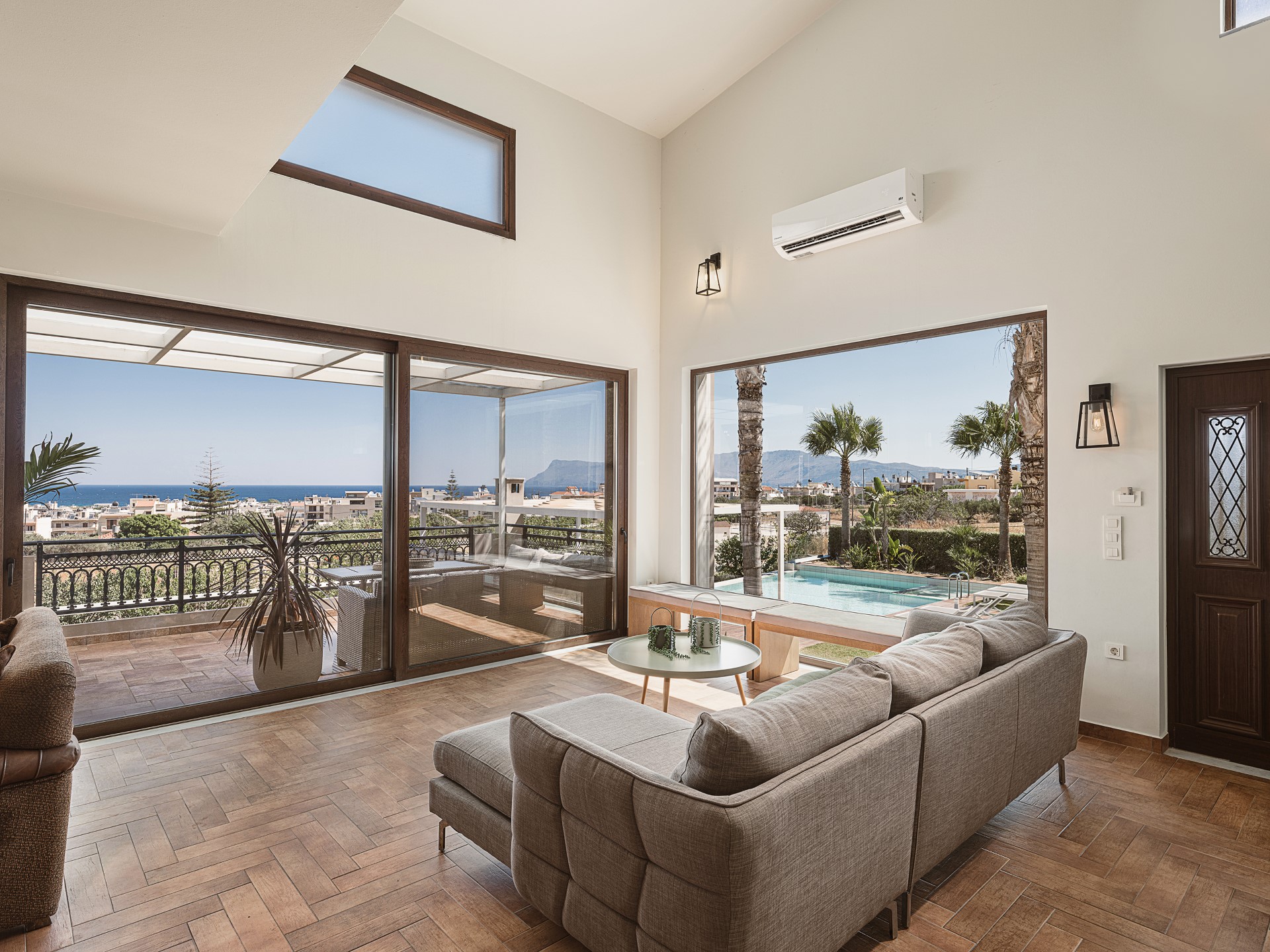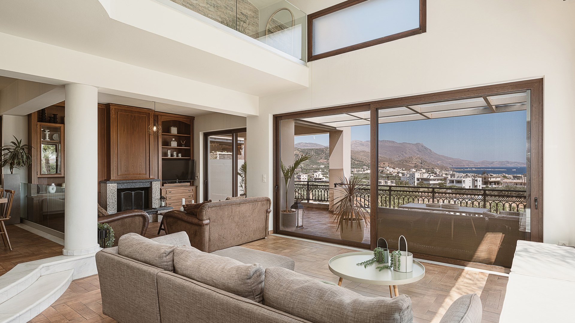 Perched in an elevated position, this spacious five-bedroom villa showcases striking architecture and sweeping views of the Cretan coastline and rolling hills. Designed to enhance natural light and airy living, it features expansive interiors and effortless flow to outdoor spaces, creating a refined retreat ideal for relaxation and memorable gatherings in a stunning Mediterranean setting.