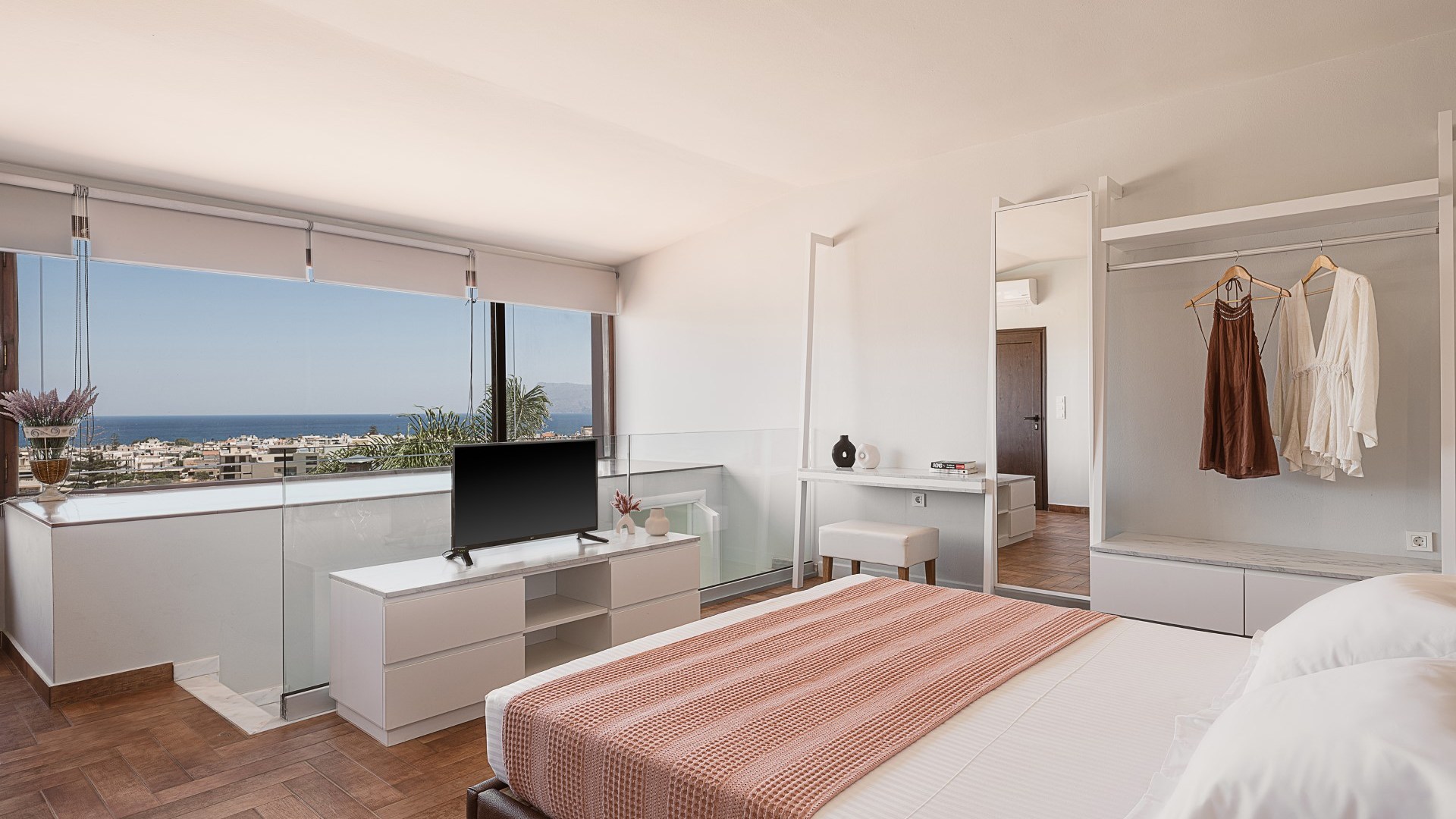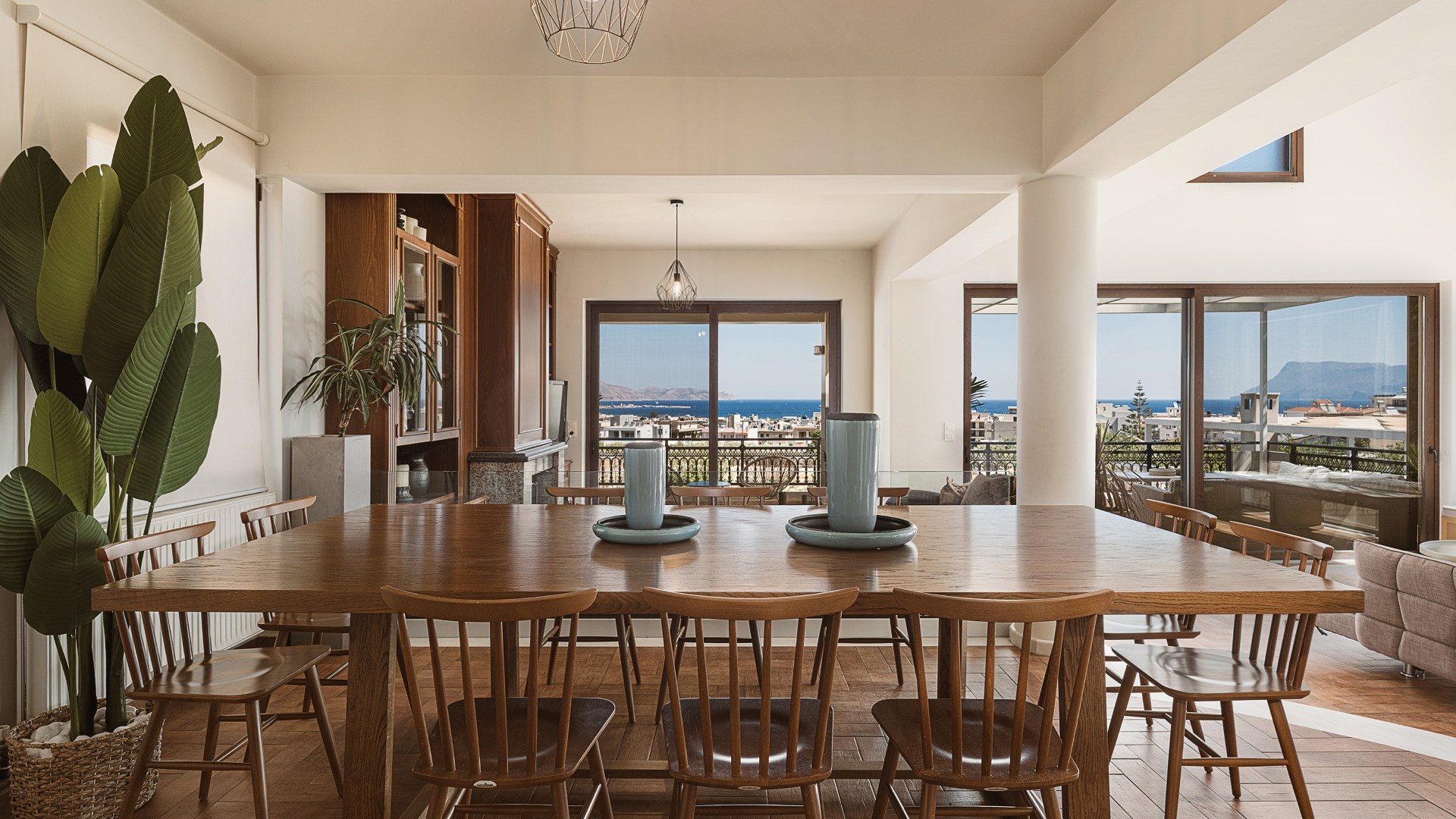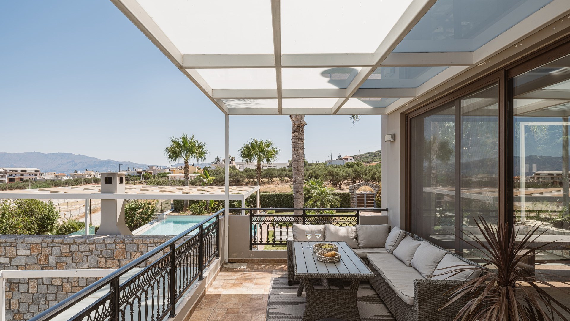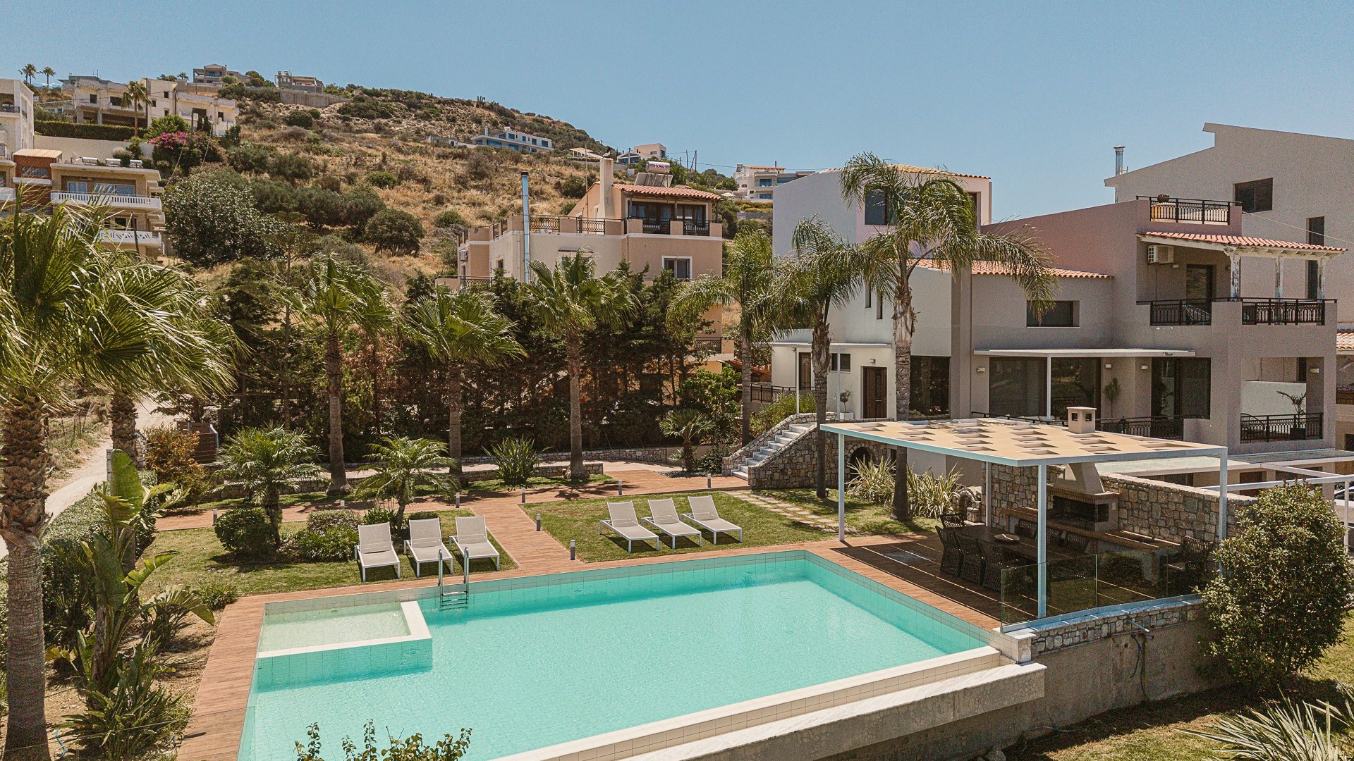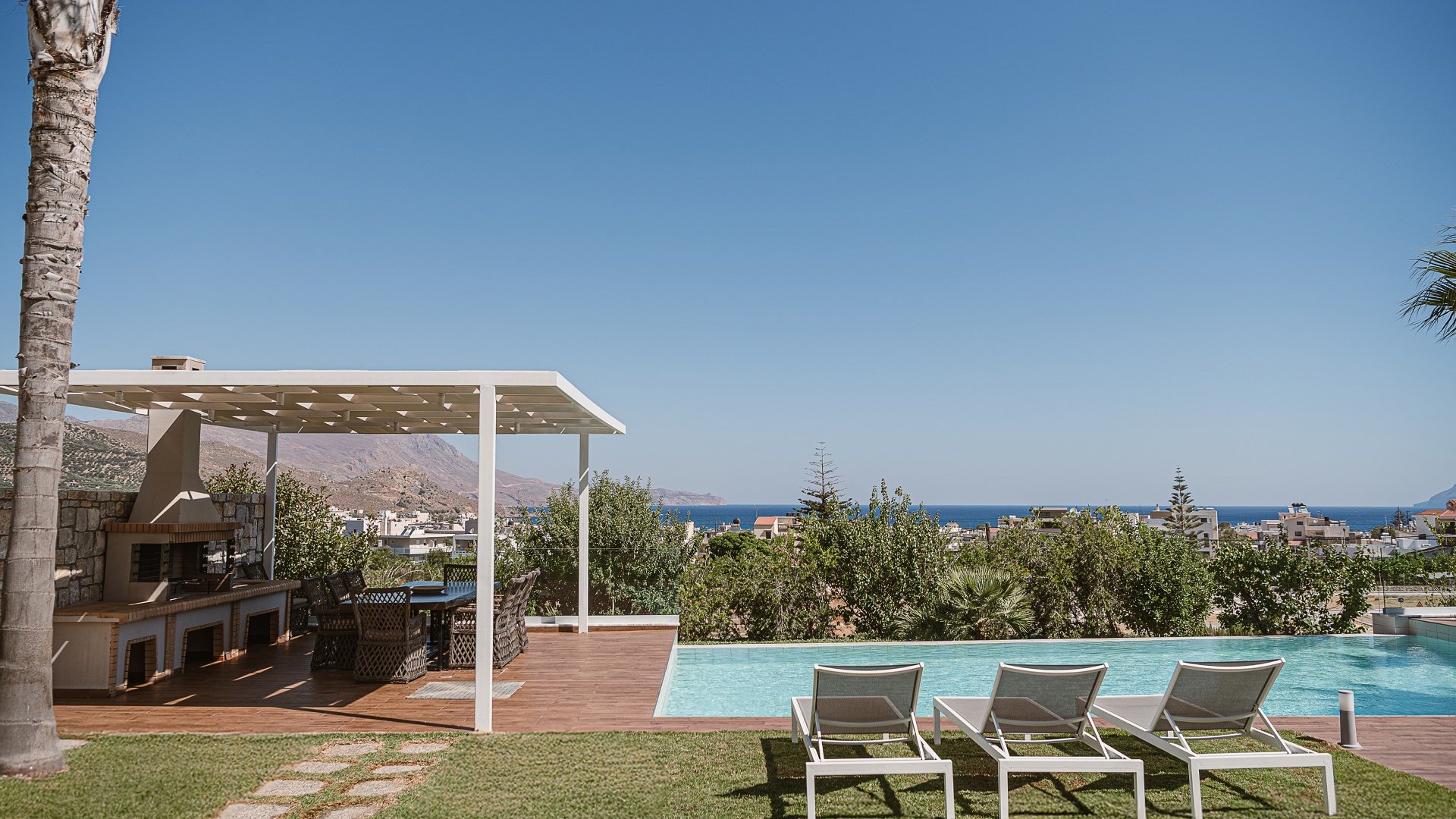 Perched in an elevated position, this spacious five-bedroom villa showcases striking architecture and sweeping views of the Cretan coastline and rolling hills. Designed to enhance natural light and airy living, it features expansive interiors and effortless flow to outdoor spaces, creating a refined retreat ideal for relaxation and memorable gatherings in a stunning Mediterranean setting.