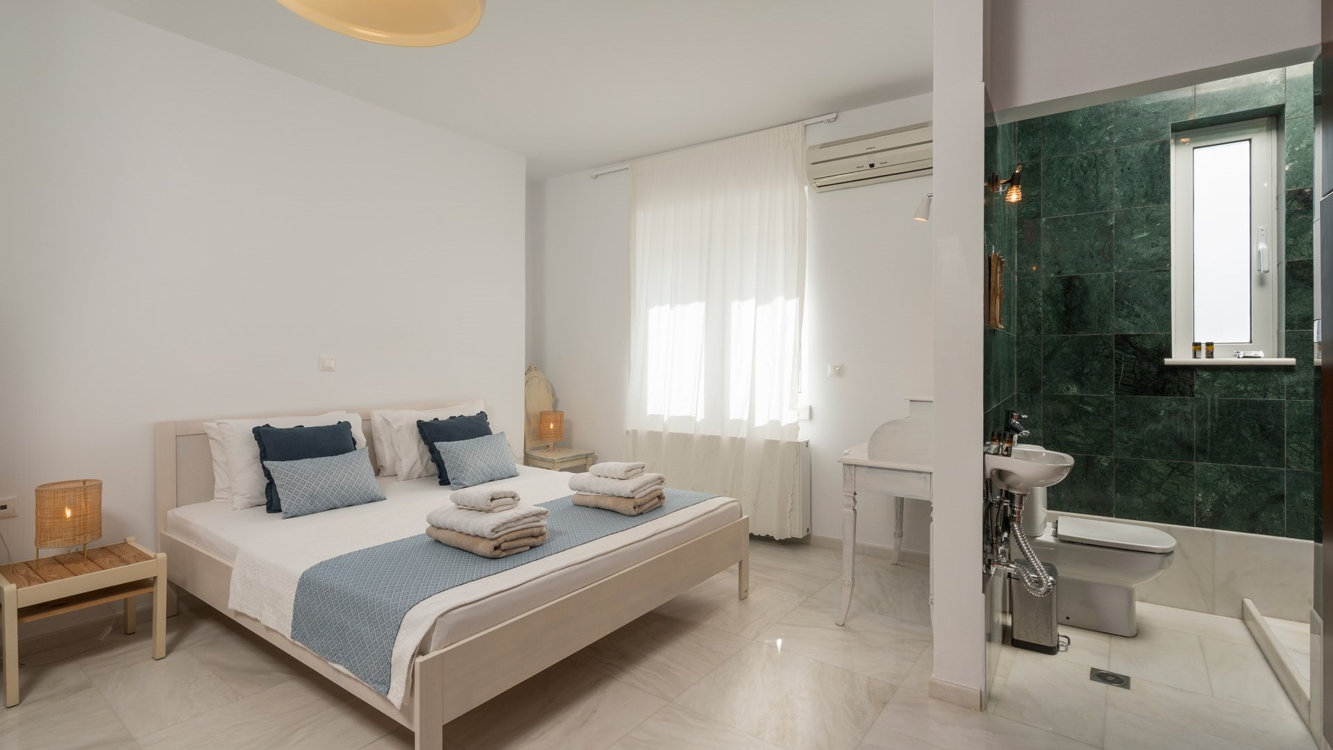 Only 30 meters from the picturesque sandy coves of Agii Apostoli, Saltia Roof Garden Complex, consisted of two modern apartments, offers all kinds of amenities in one of the most popular resort areas of Chania! Six spacious bedrooms, 4,5 bathrooms, fully equipped kitchens, sea view balconies and, of course, the roof garden where you can enjoy the warm sun and the exceptional views of the turquoise waters of the area, are only some of the highlights of this complex, ideal for family holidays!