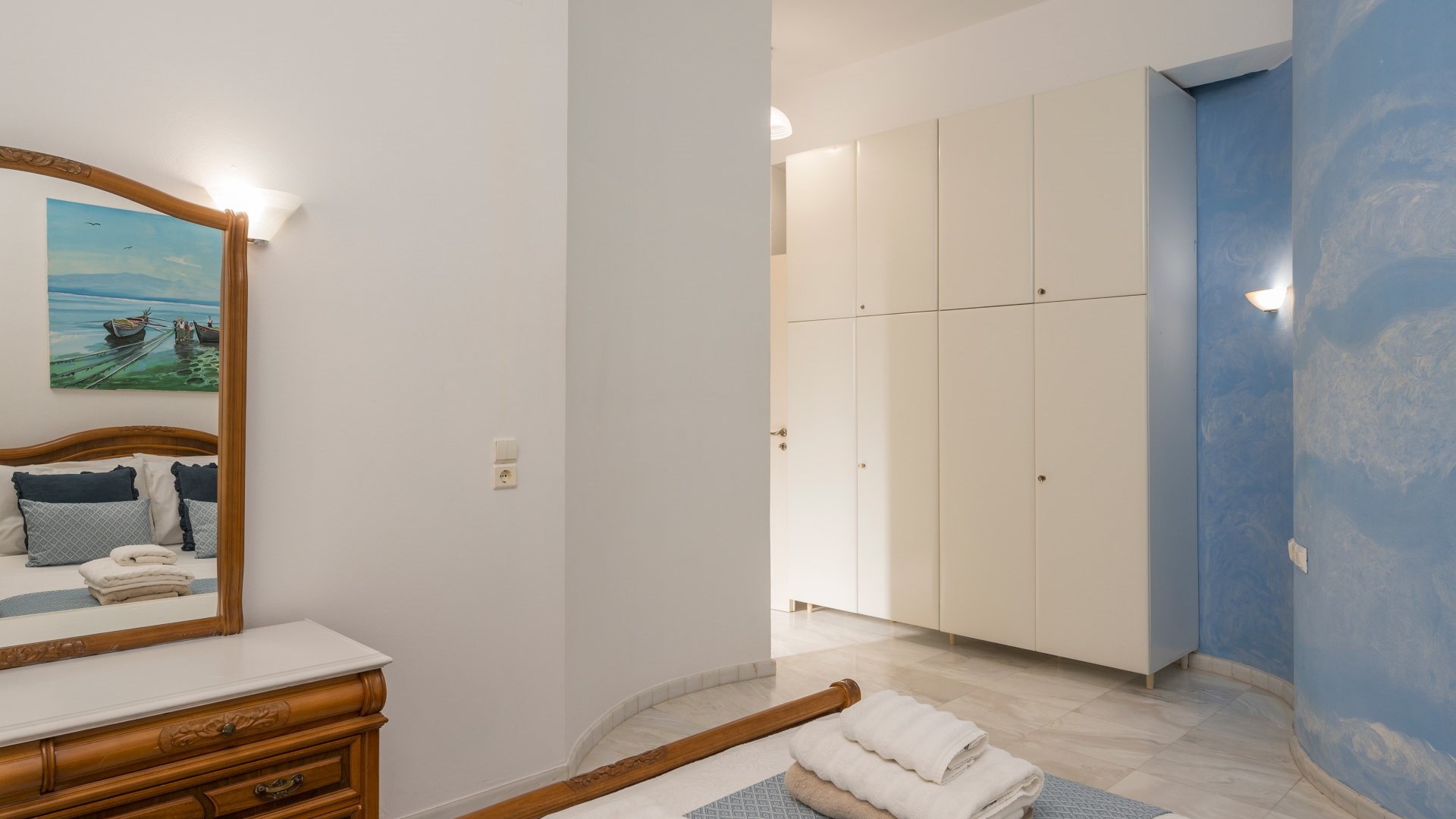 The apartment is sited in the resort area of Agii Apostoli, only 10 min. drive from Chania center! The picturesque, sandy coves of Agii Apostoli, only 5 min. walking distance from the apartment, organized with sunbeds and small beach bars, will offer you all day relaxation at the beach! The highlight of the area is the big park, with trees, a kids playground and several resting points, offered for morning and evening walks! Two big super markets, mini markets, pharmacies, cafes, restaurants and all kind of shops are offered also in walking distance!