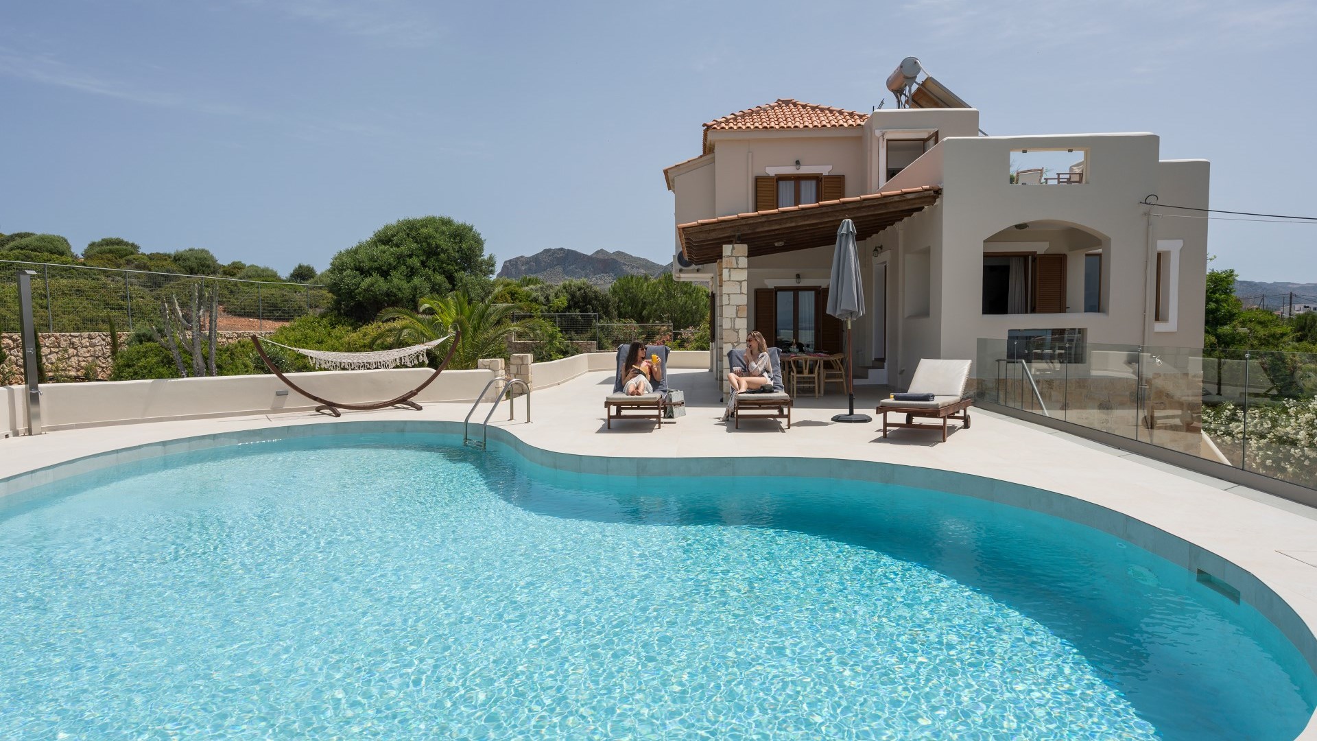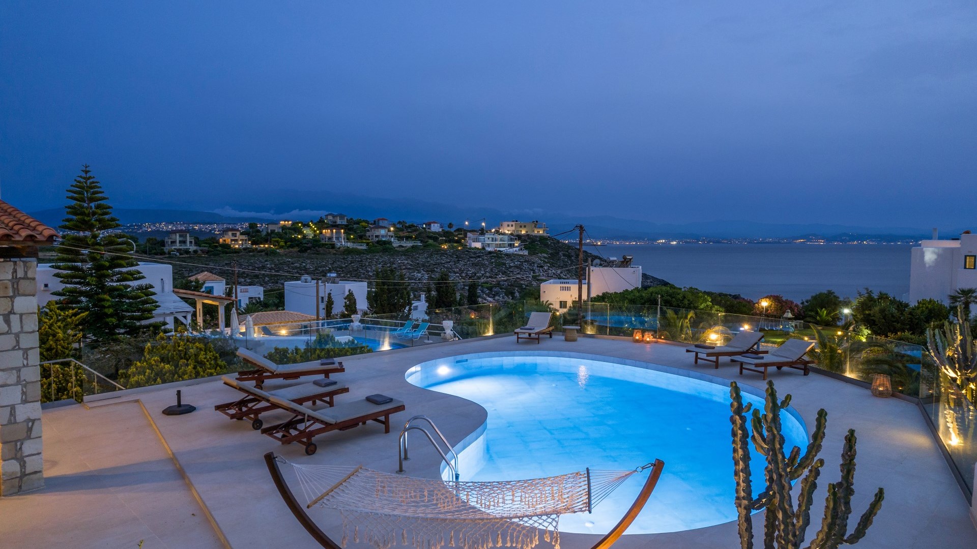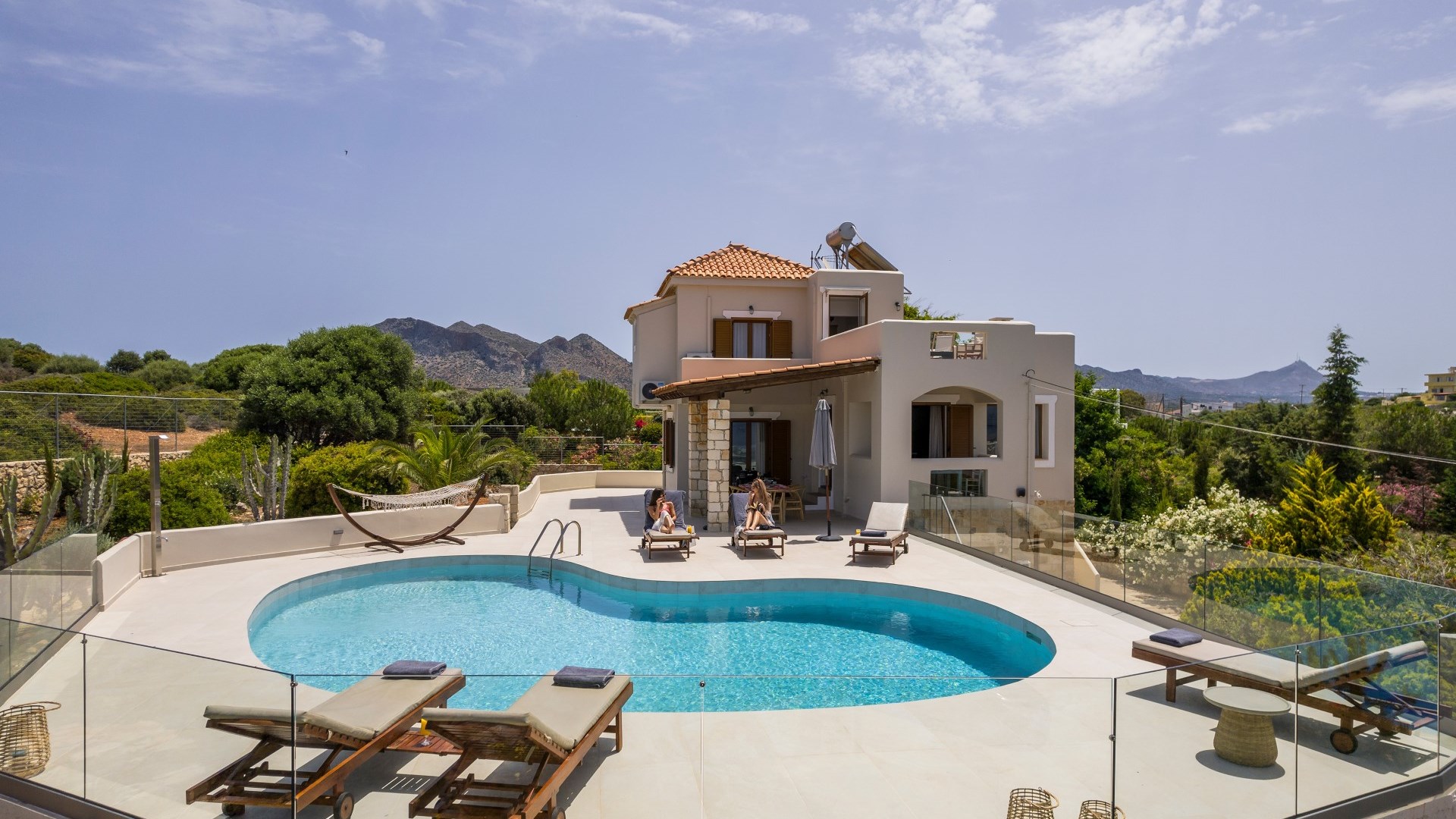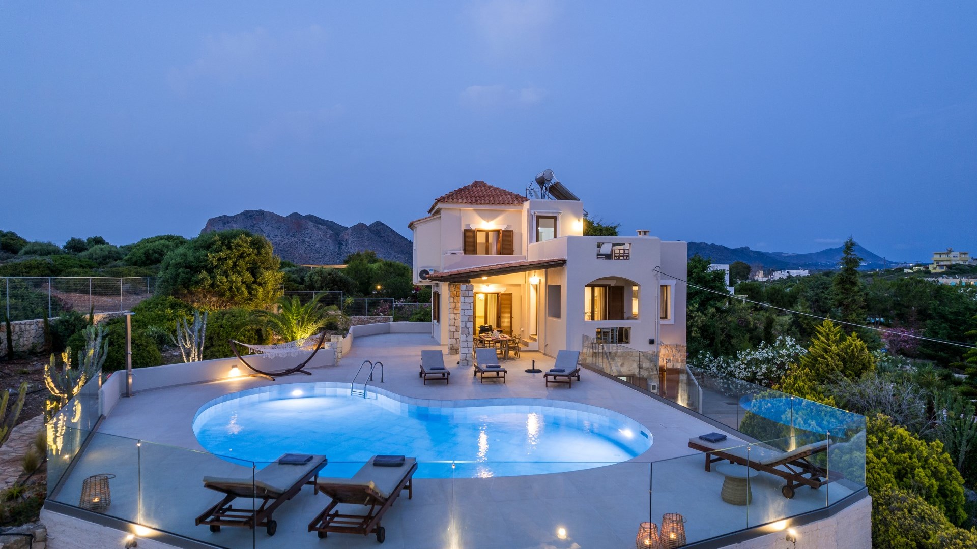 Unique benefits of the villa are the Heated Pool, the wild Cretan landscape, the amazing panoramic sea view, the all-day sunny areas, and the wonderful Sunsets you can watch every night from the villas Pool area!