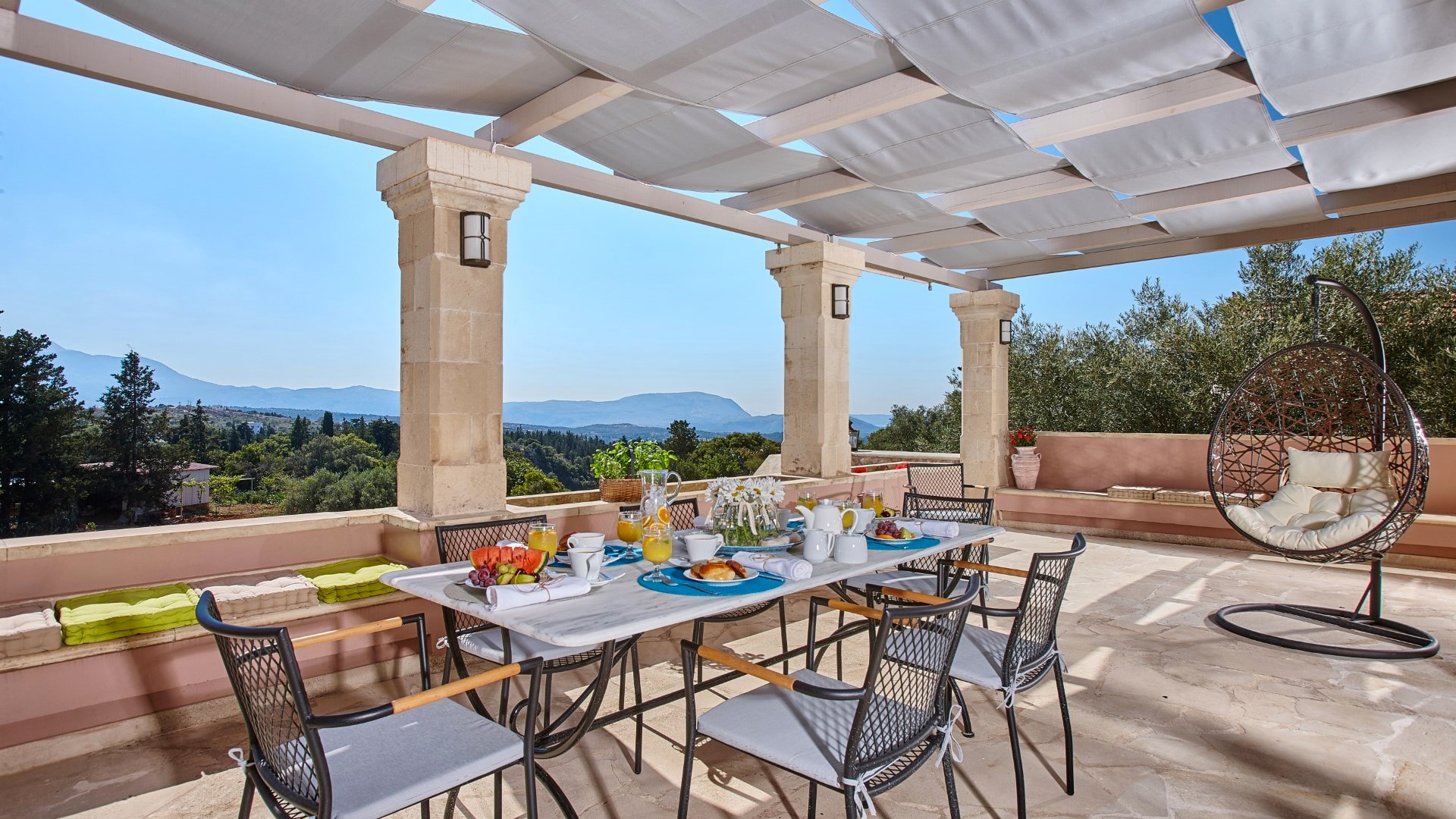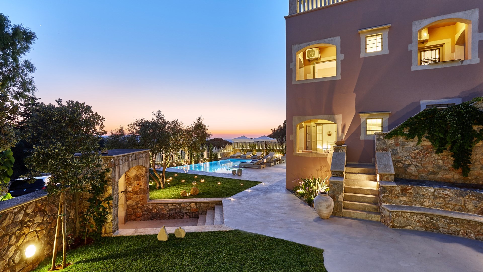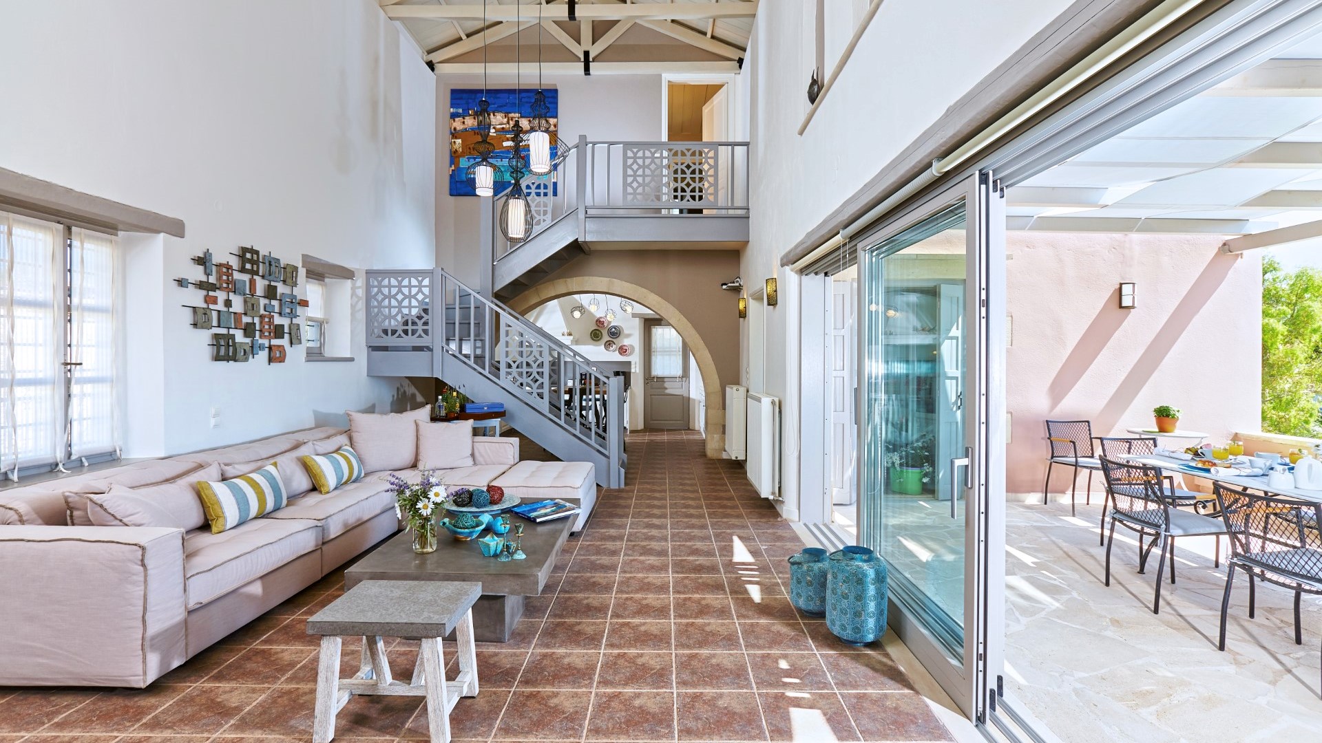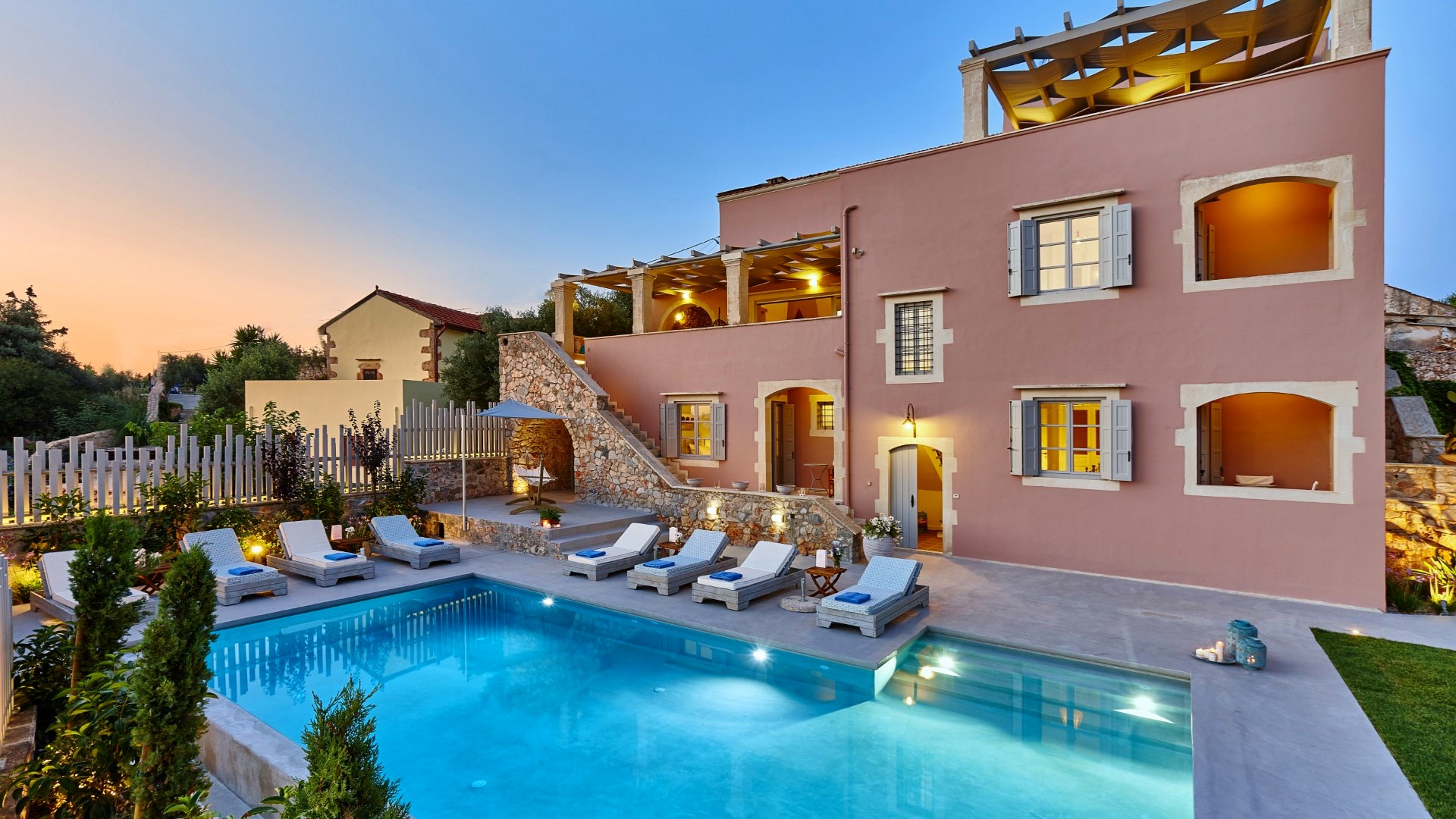 An extraordinary holiday villa with Private Heated Pool, in the picturesque village of Xirosterni in Apokoronas area, offering enchanting views of the bay of Almyrida and the imposing White Mountains! What makes this villa unique is the blend of the traditional design of a Cretan mansion, with the amenities of a luxurious villa of really high standards! The luxurious gym and the sauna, as well as the Hot Tub on the upper balcony are unique amenities that only a few villas have!