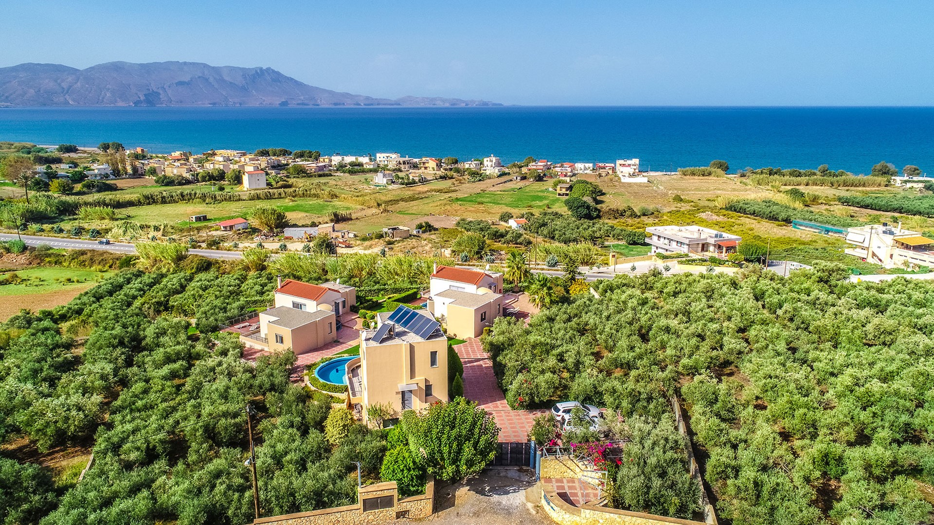 The capital Chania City is connected with all major cities of Crete by the national road, the nearest harbor is Souda (5 km) and the nearest airport is Chania Daskalogiannis Airport with code name CHQ (10 km). Heraklion International airport with the code name HER is also convenient (140km).
