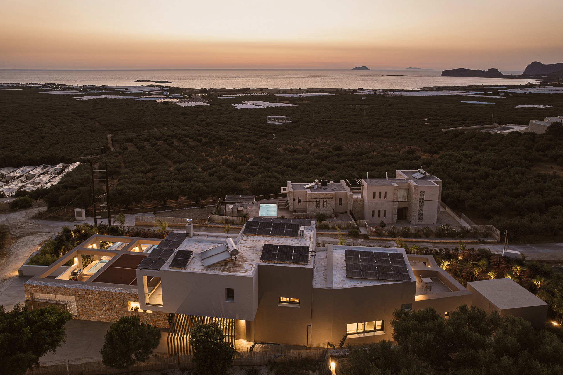 Architectural Seaview Villa is located very close to FALASSARNA BEACH. The villa spans 260 SQ.M. across TWO LEVELS and has been designed to combine CONTEMPORARY ARCHITECTURE with comfort and functionality.