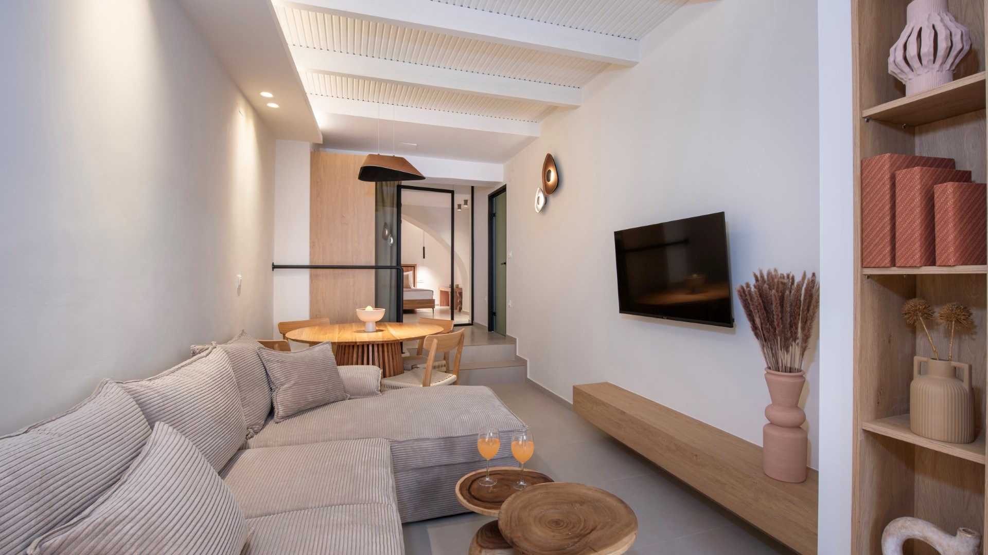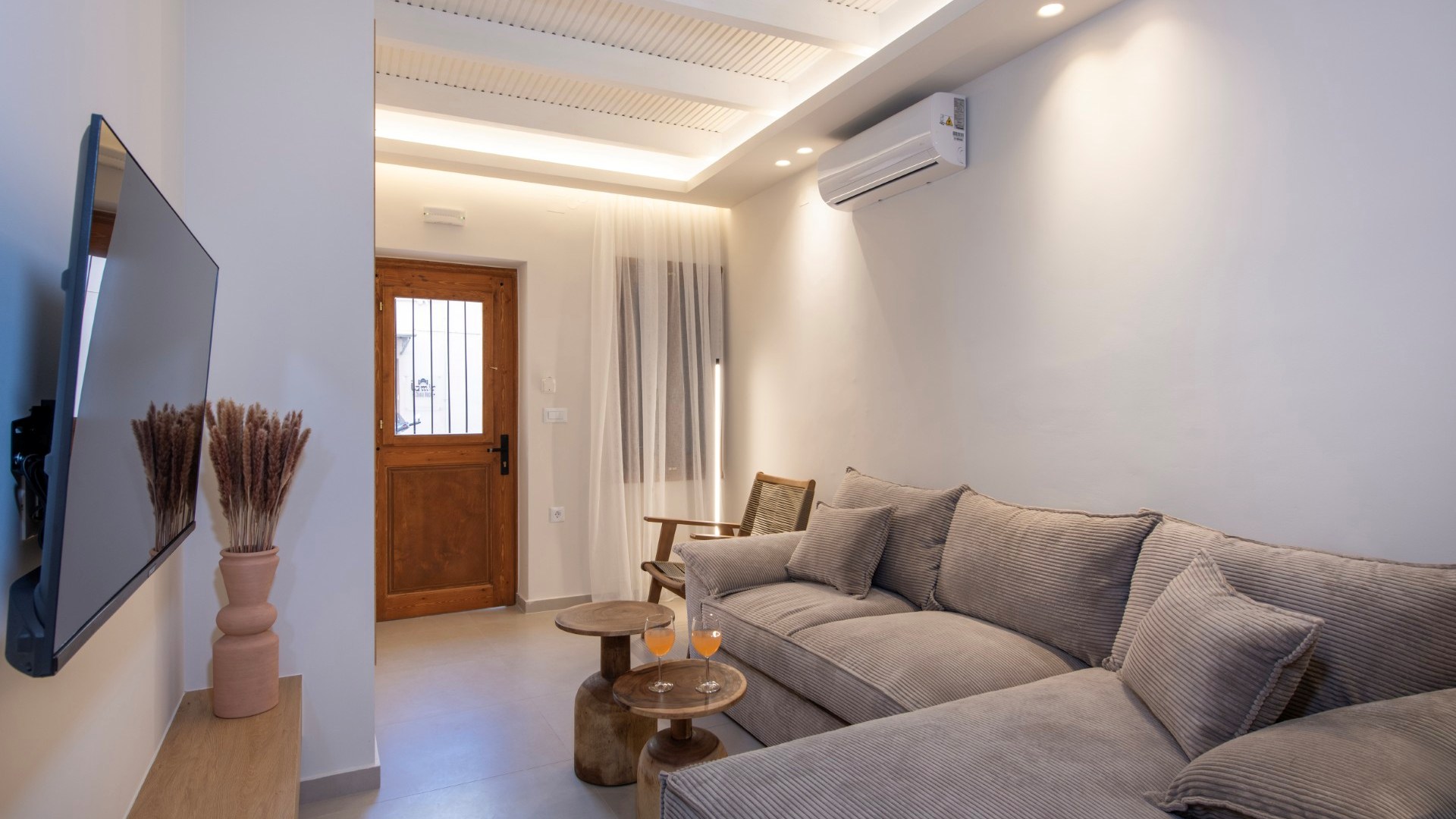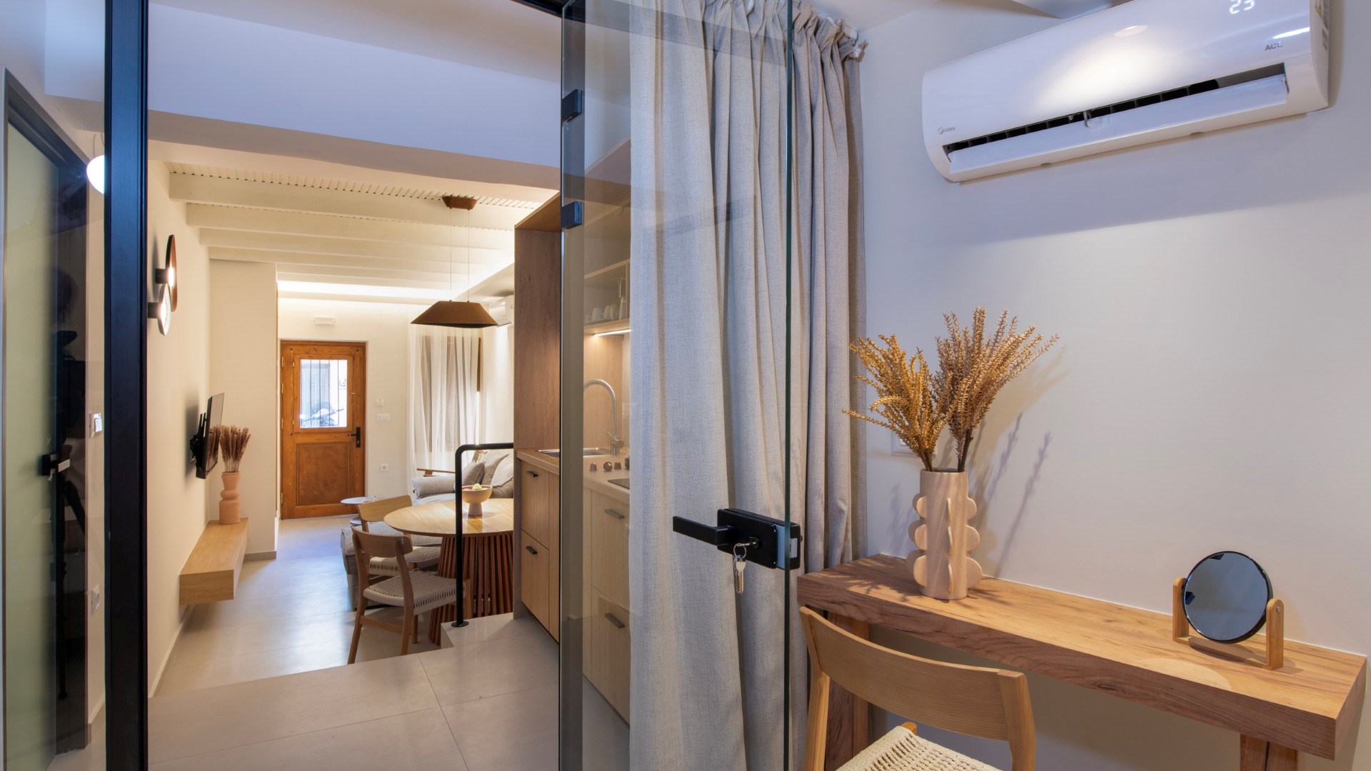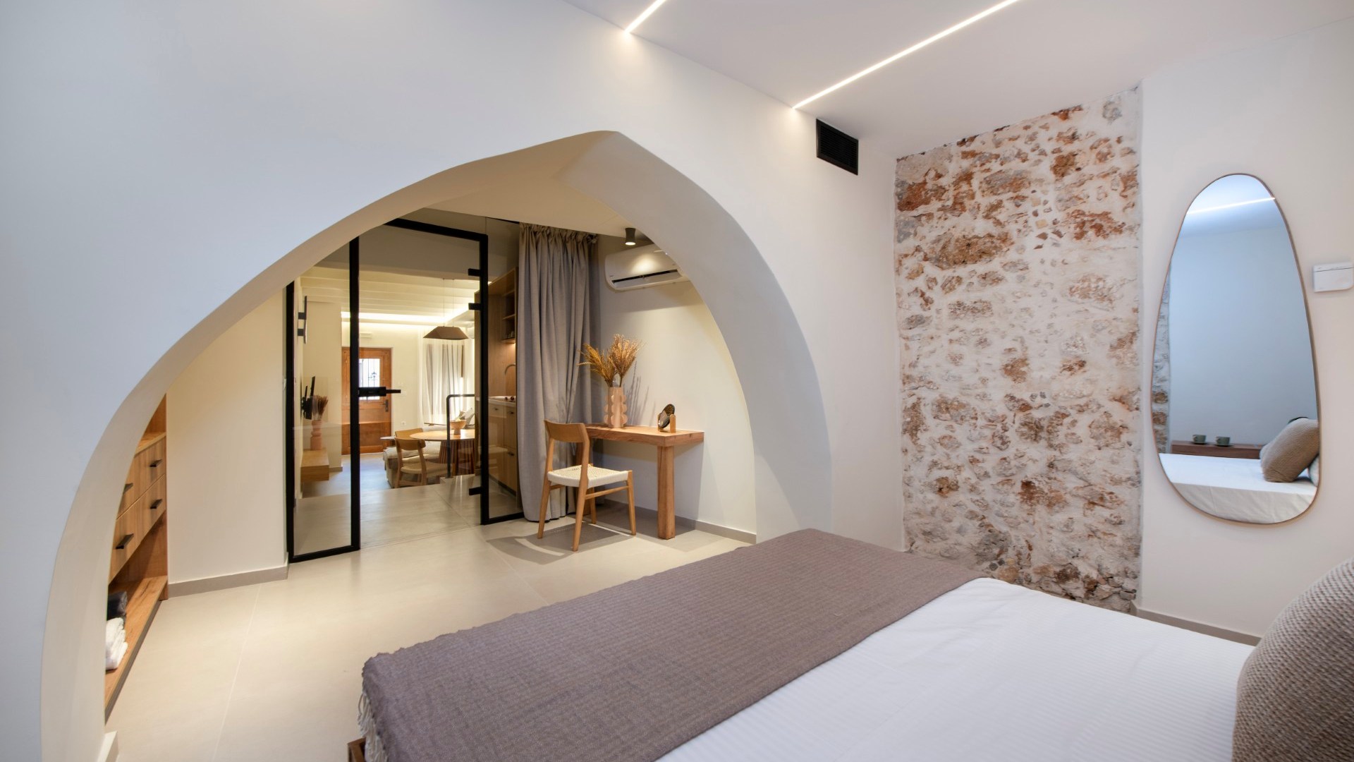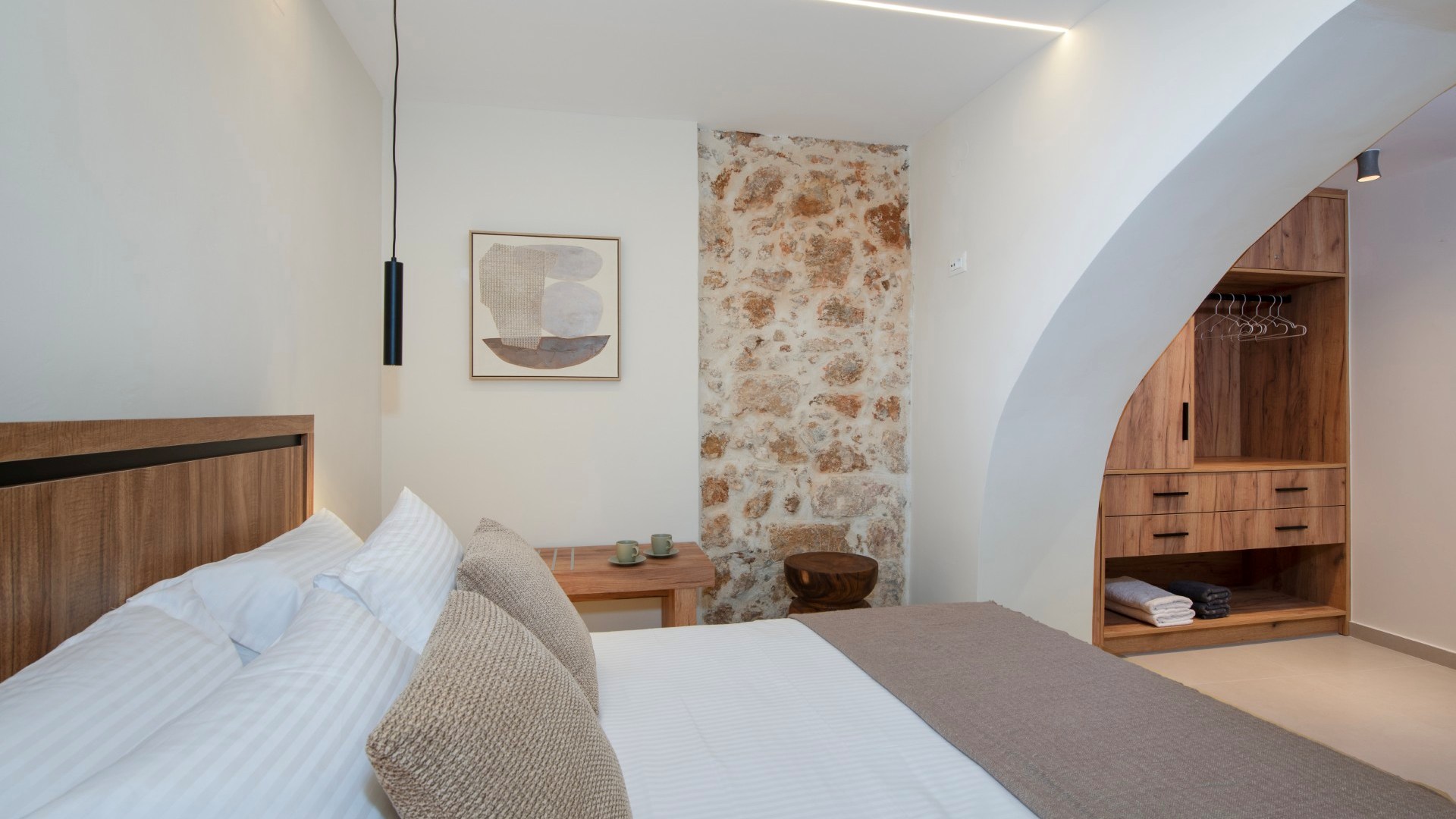 Welcome to BŌW Luxury Apartments, a newly renovated residence in the heart of Splantzia, Chania Old Town. This minimalist ground-floor apartment accommodates up to four guests, with two in the bedroom and two on the comfortable sofa bed. Blending elegant design with modern comfort, it provides an ideal base from which to explore the beauty of Crete. Thoughtfully designed with an emphasis on simplicity, natural light, and functionality, it offers a serene retreat after a day spent discovering the charming alleys of Chania.