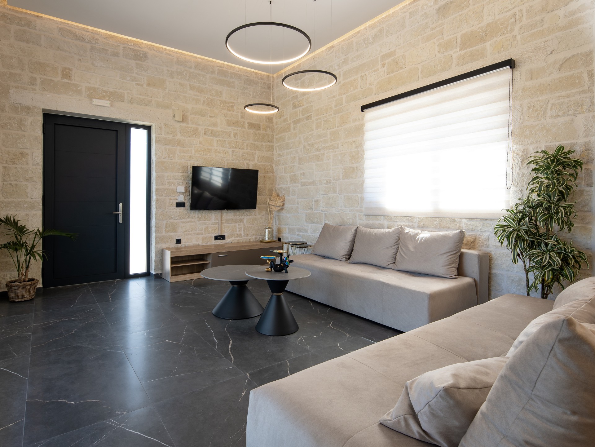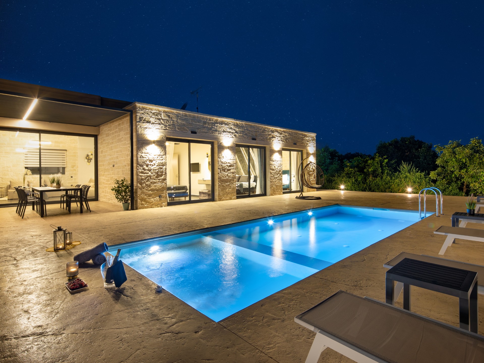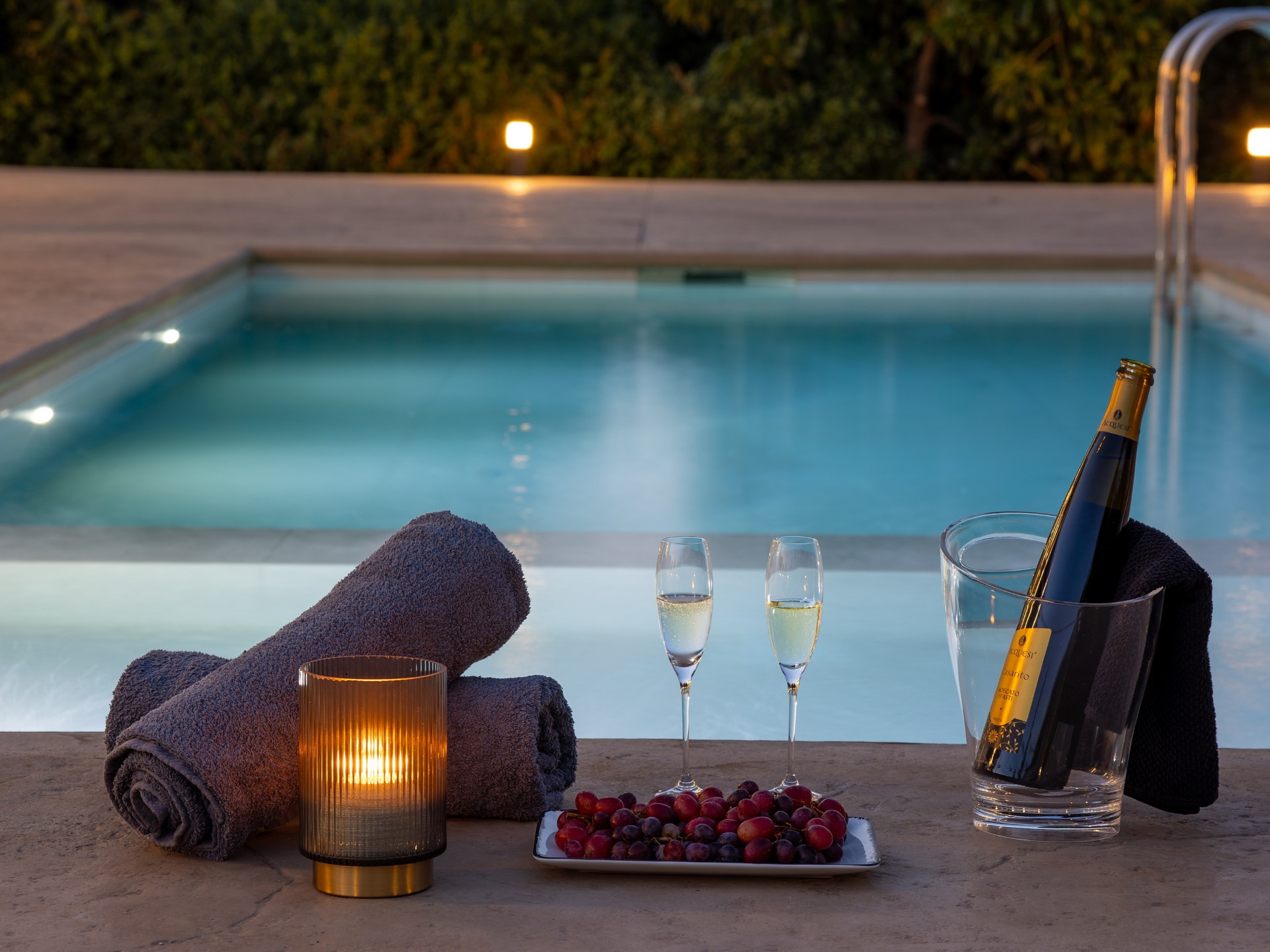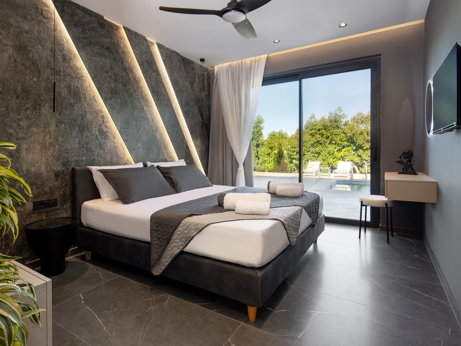 Discover the Aurora luxury villa surrounded by citrus groves and mountain views in the Cretan countryside. designed for comfort and style, it features three elegant bedrooms, spa-inspired bathrooms, a modern kitchen, and bright living spaces with direct access to the pool. outside, relax by your private swimming pool, enjoy the BBQ and shaded dining area, and experience the perfect blend of tranquility and modern luxury just a short drive from Chania city.