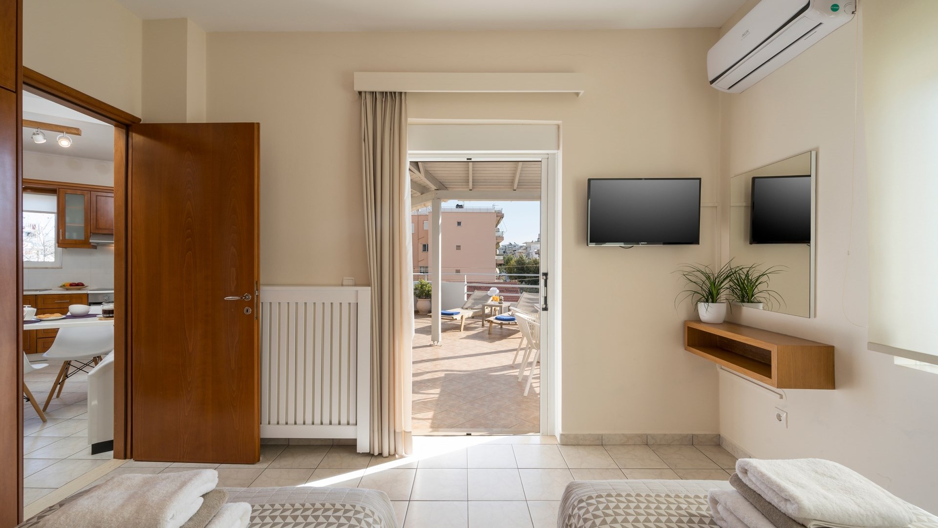 Basic and most important thing is the SANDY BEACH of the Chania city which distance is only 50 meters from the apartment, famous for the fish taverns, restaurants and cafes that can easily give the guest the relaxation they need for their holidays.