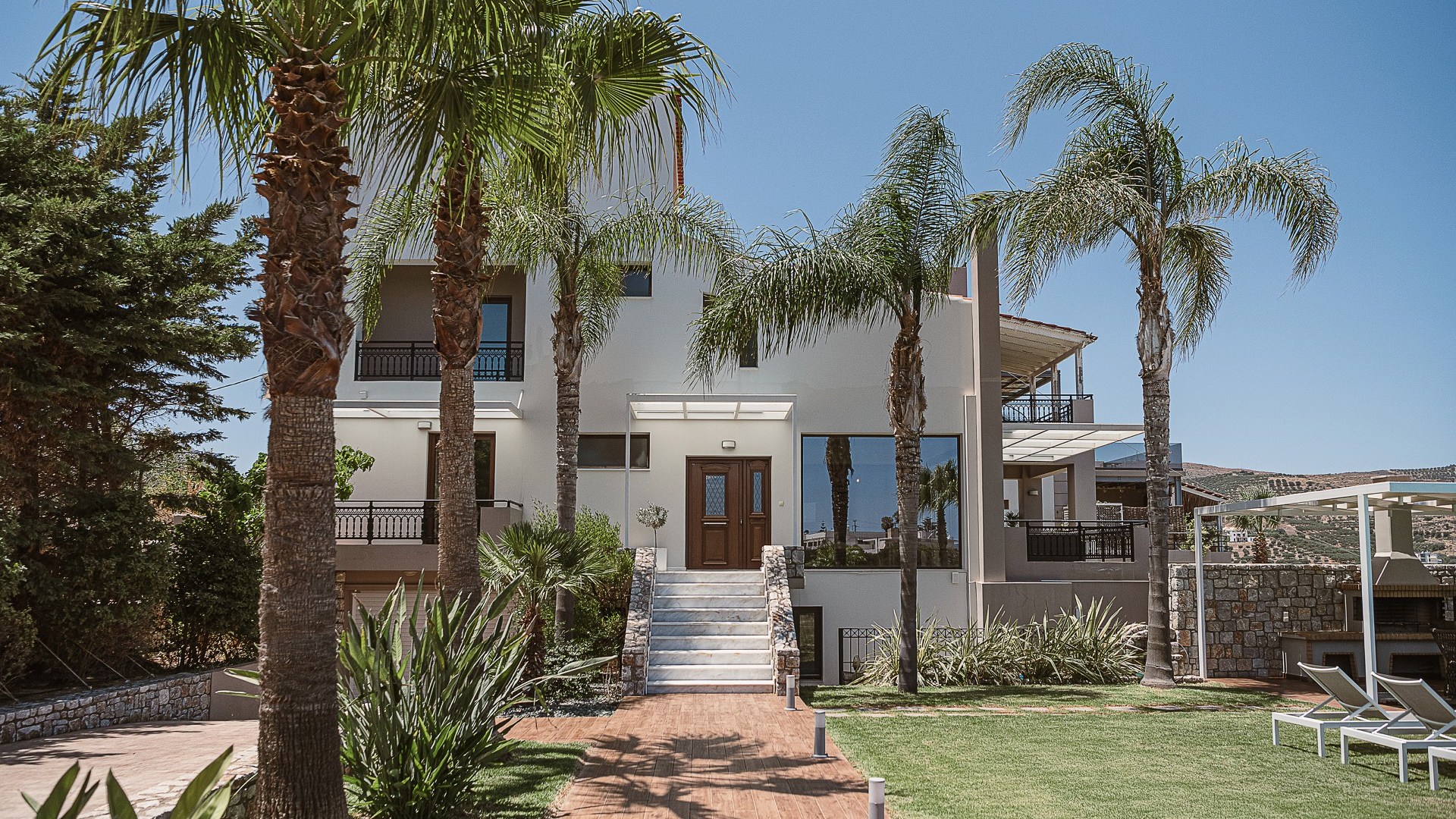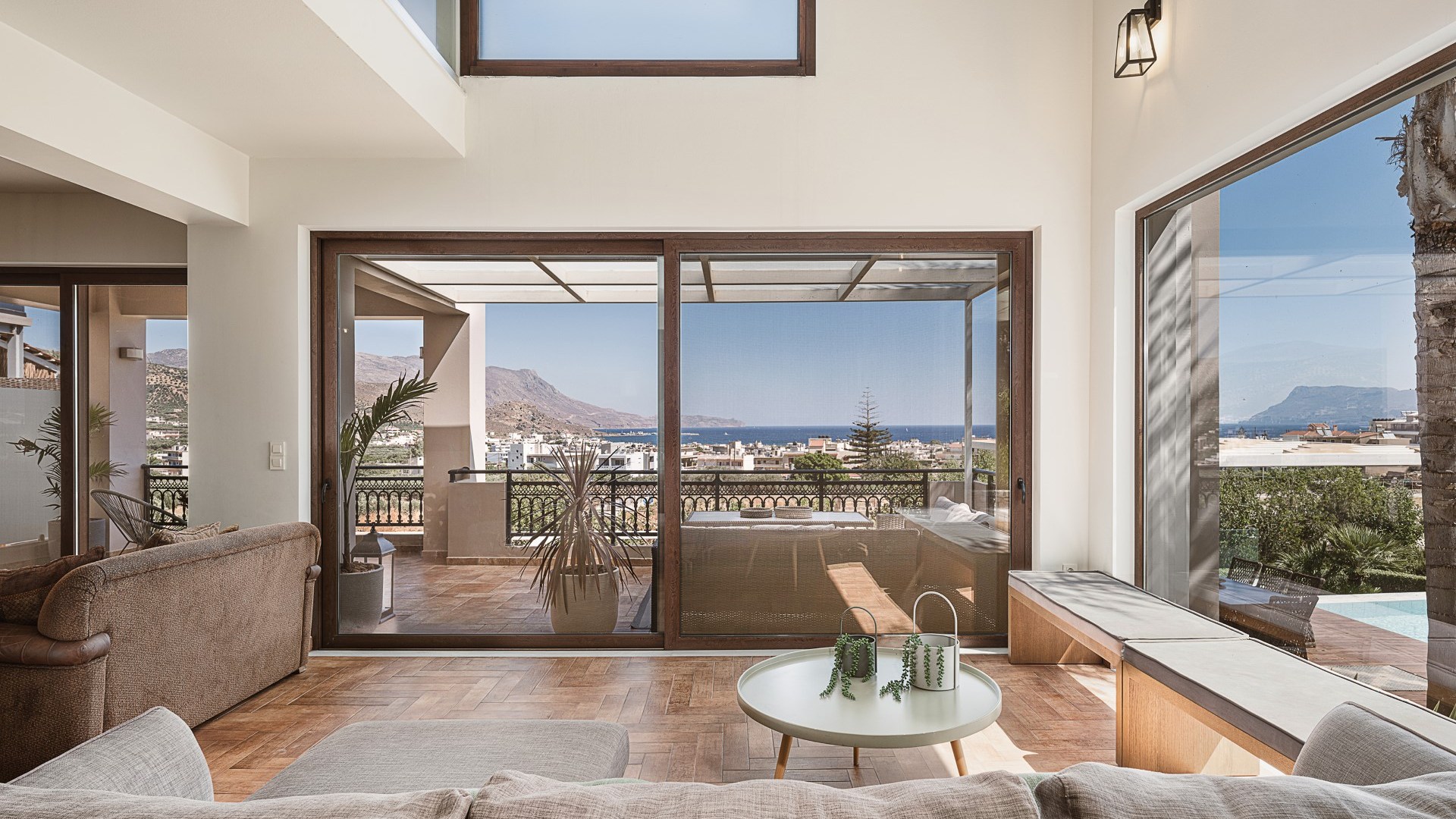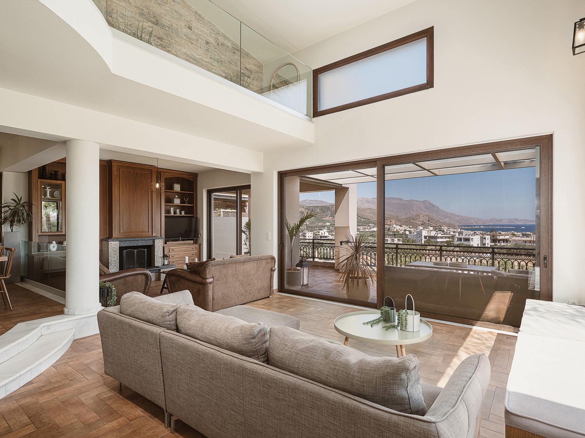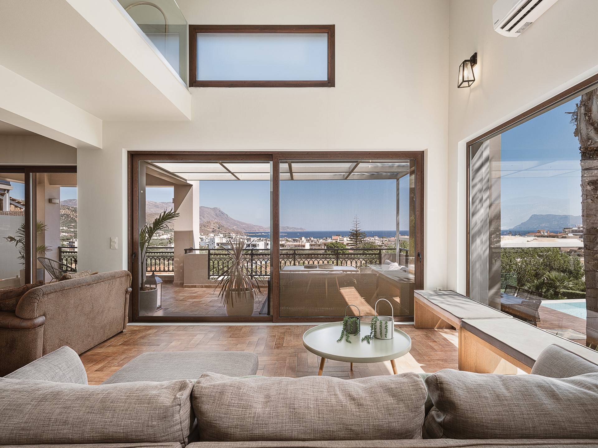 Perched in an elevated position, this spacious five-bedroom villa showcases striking architecture and sweeping views of the Cretan coastline and rolling hills. Designed to enhance natural light and airy living, it features expansive interiors and effortless flow to outdoor spaces, creating a refined retreat ideal for relaxation and memorable gatherings in a stunning Mediterranean setting.