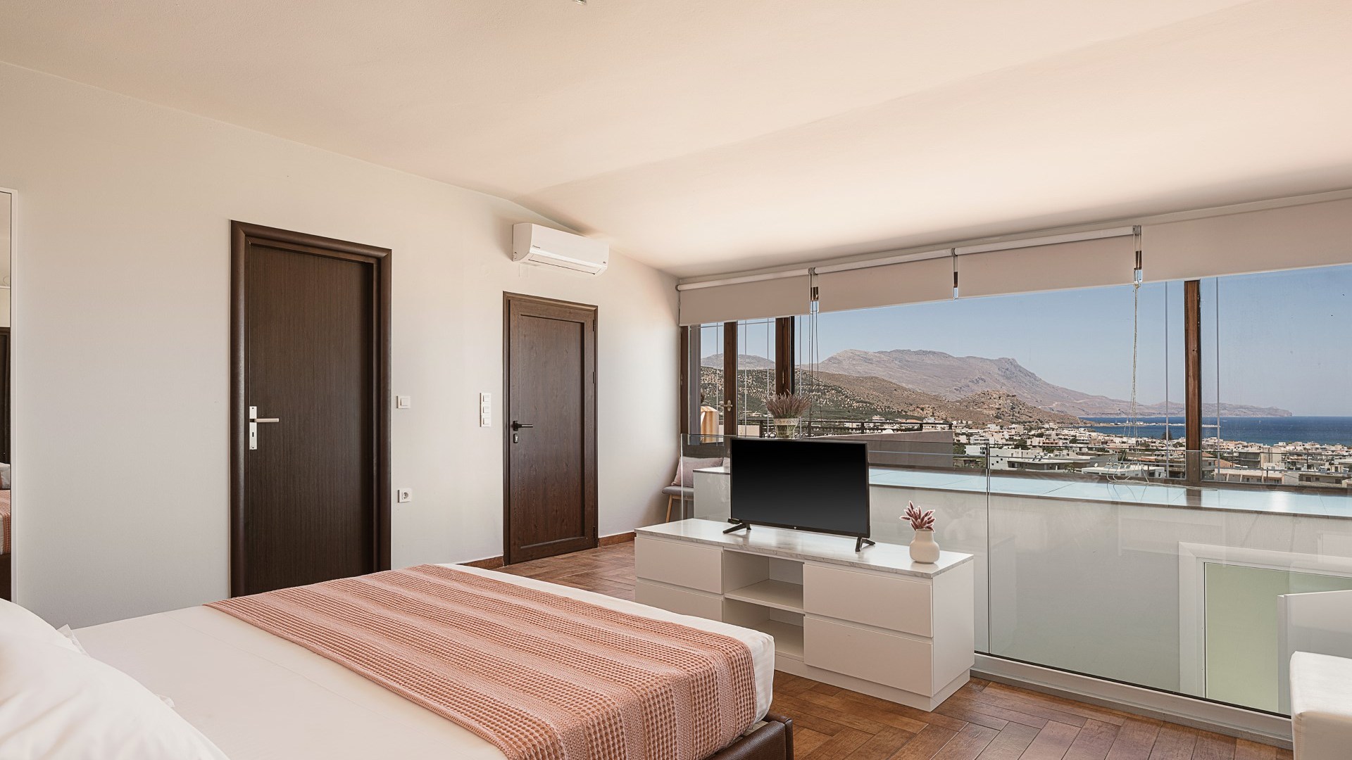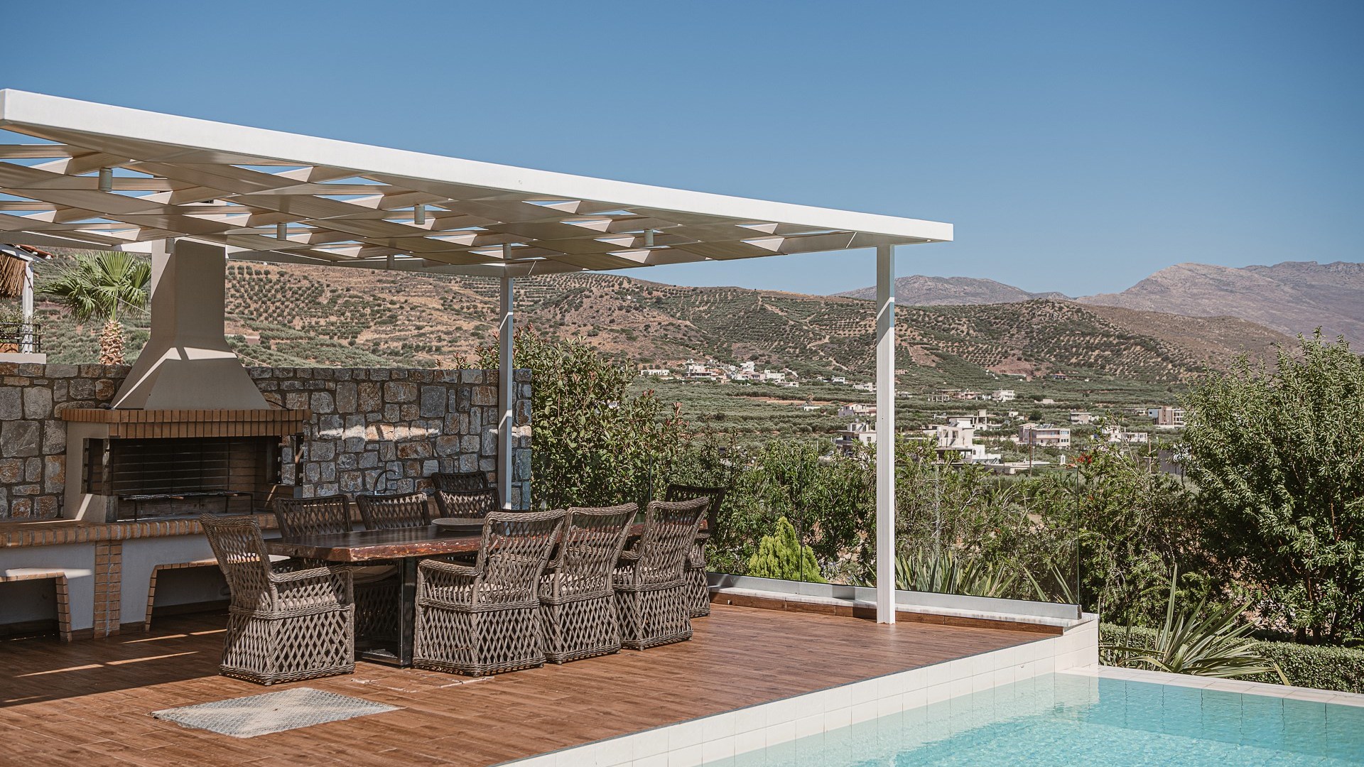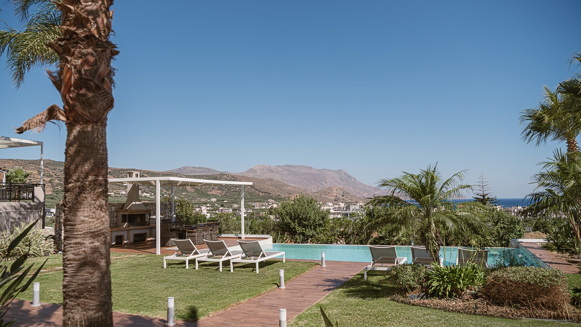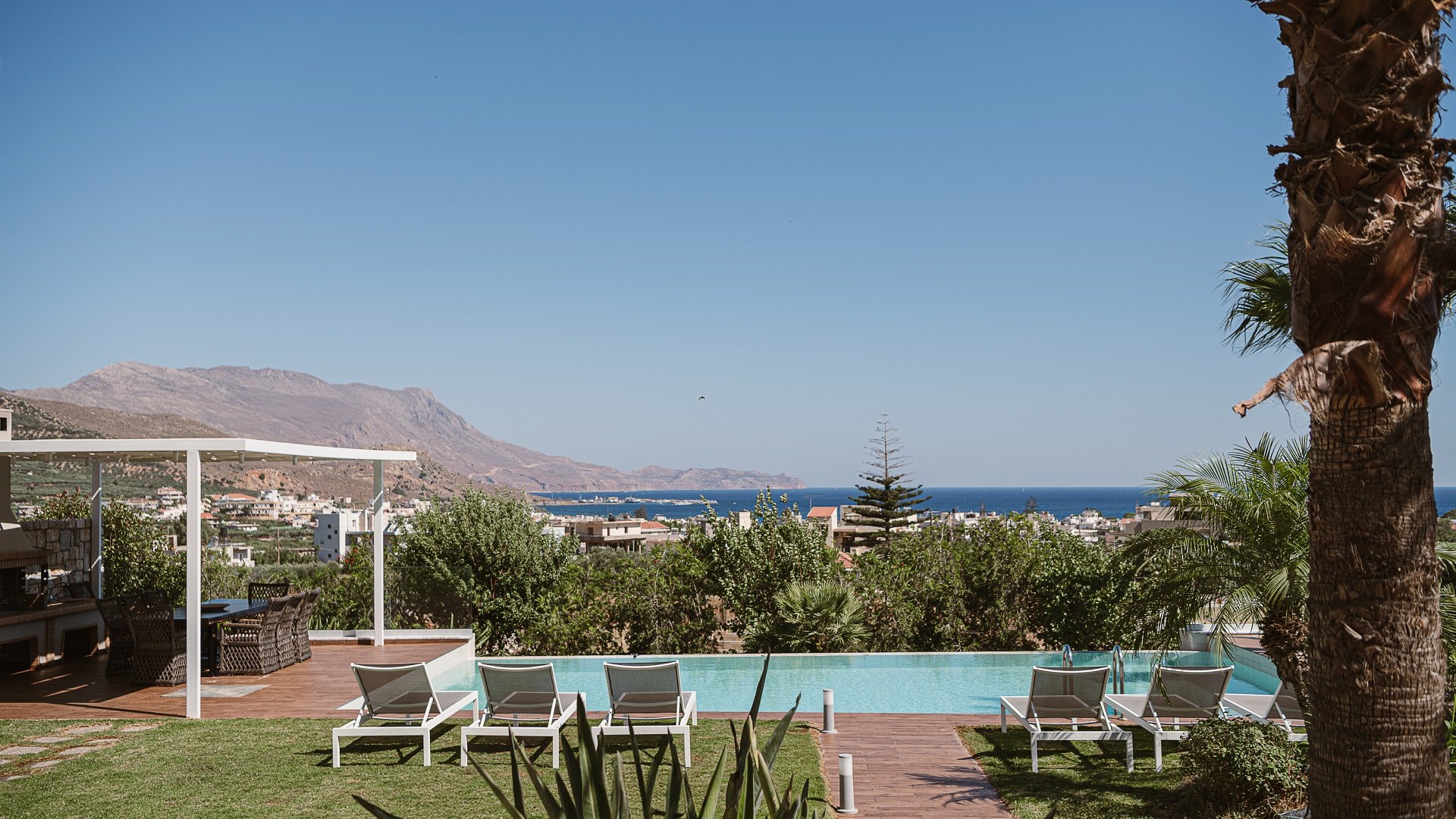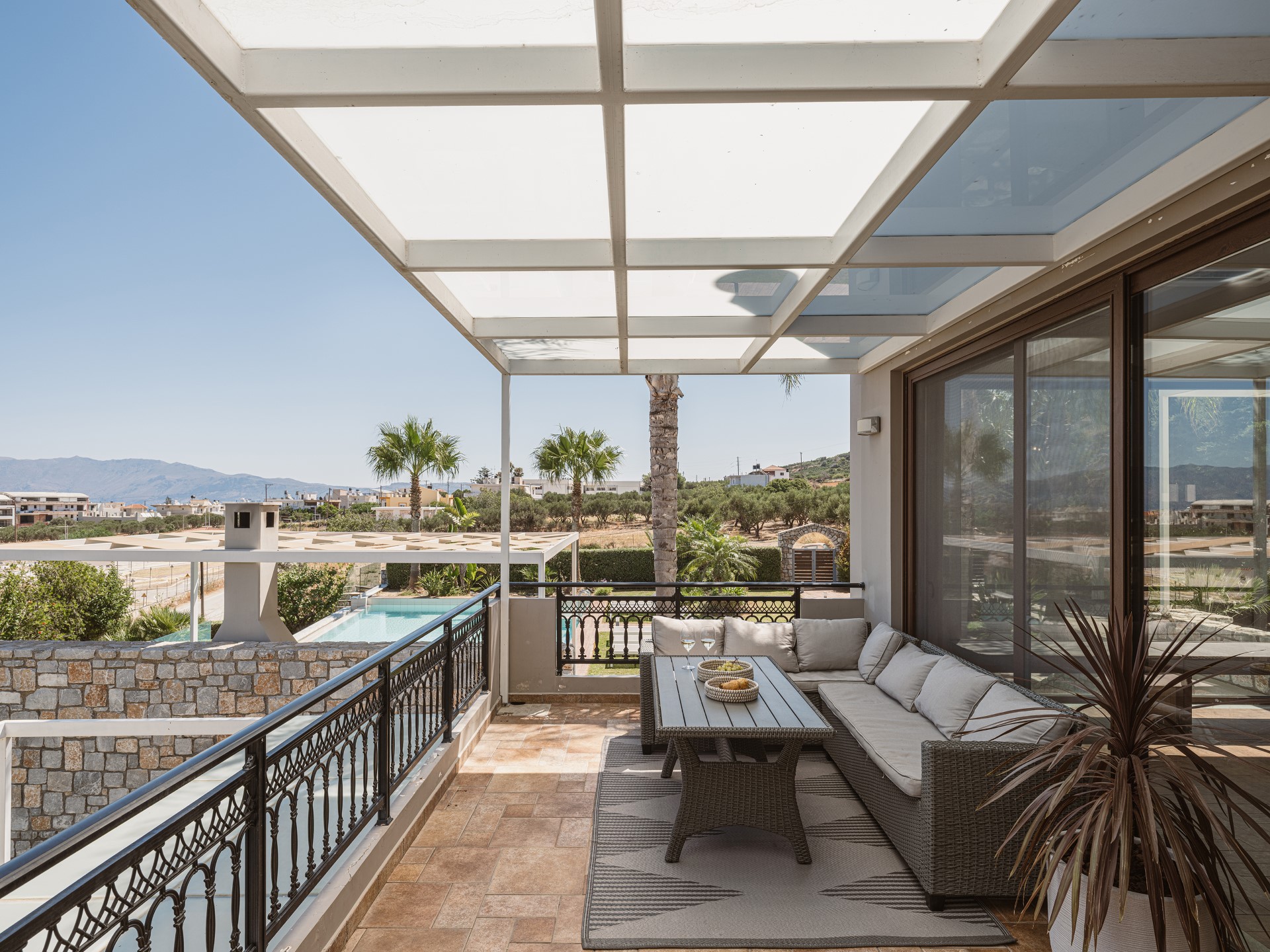 Perched in an elevated position, this spacious five-bedroom villa showcases striking architecture and sweeping views of the Cretan coastline and rolling hills. Designed to enhance natural light and airy living, it features expansive interiors and effortless flow to outdoor spaces, creating a refined retreat ideal for relaxation and memorable gatherings in a stunning Mediterranean setting.