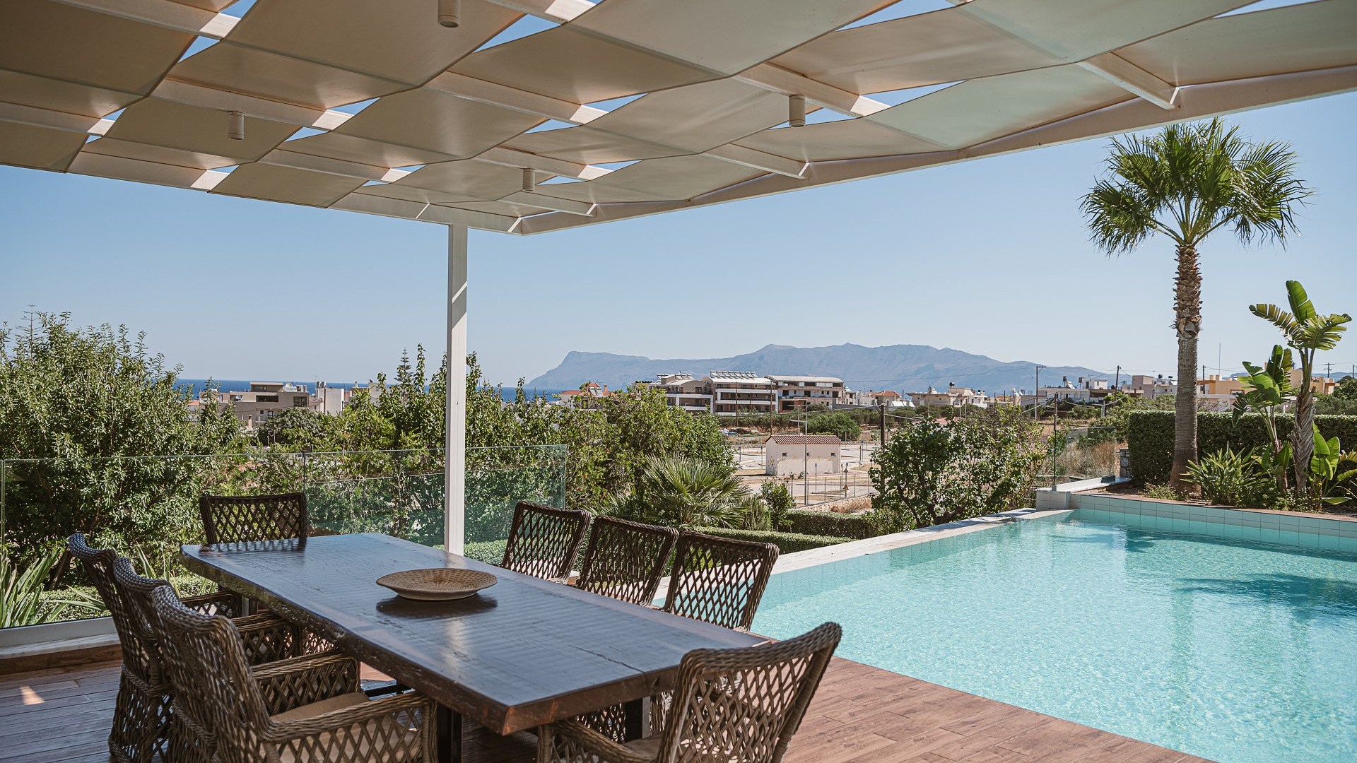 Its location provides excellent access to some of Crete’s most renowned beaches. Within a short drive, you can reach the stunning Balos Lagoon, famous for its turquoise waters and exotic scenery, the unique pink-sand beach of Elafonisi, and the expansive sandy shores of Falassarna with its crystal-clear sea and spectacular sunsets. The main road network also allows convenient access toward Chania city, making the villa an ideal base for exploring western Crete.
