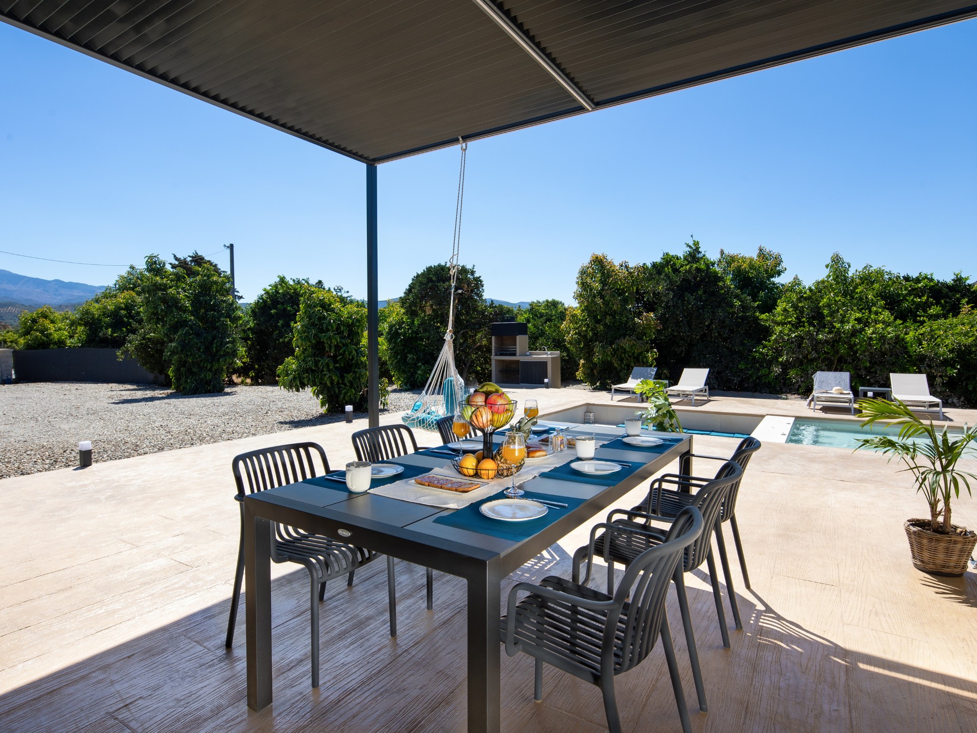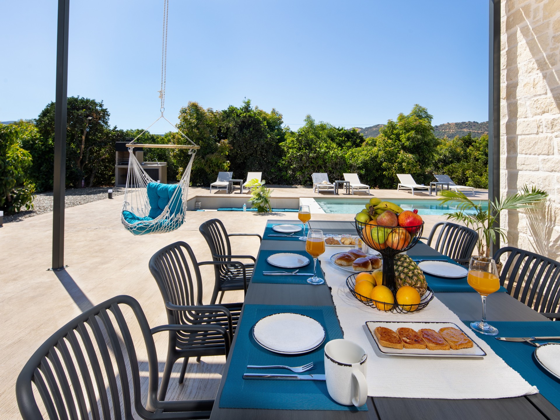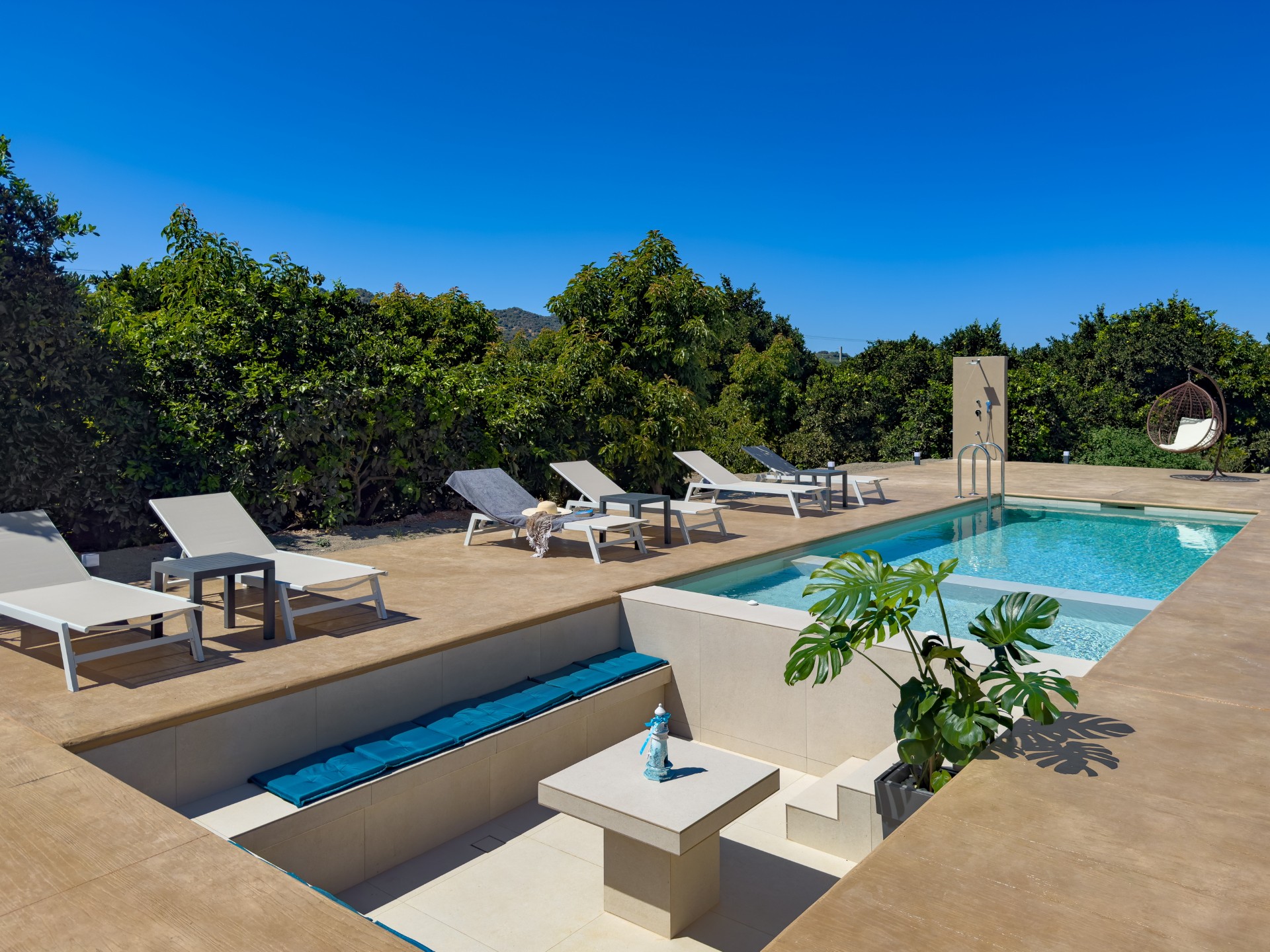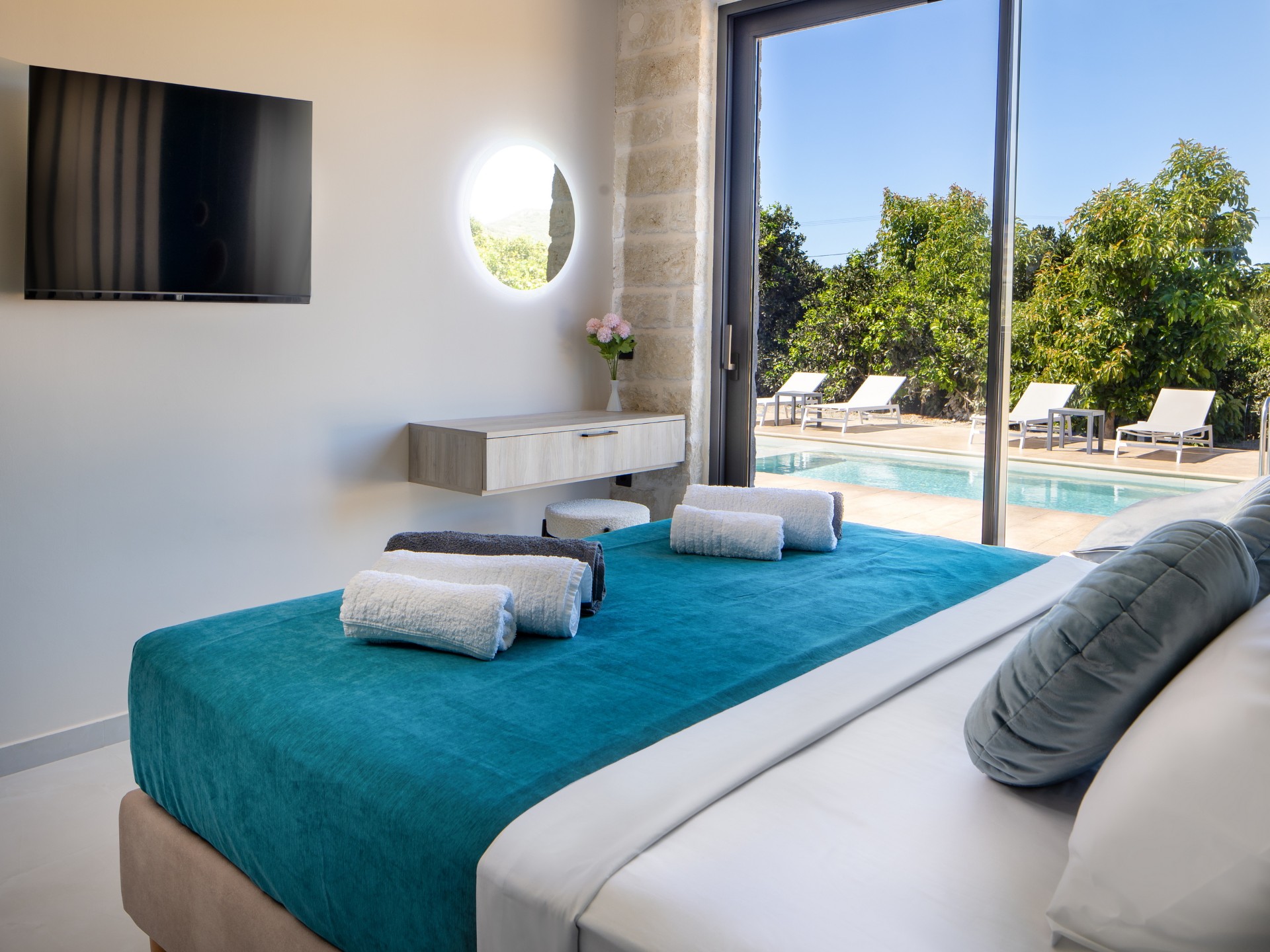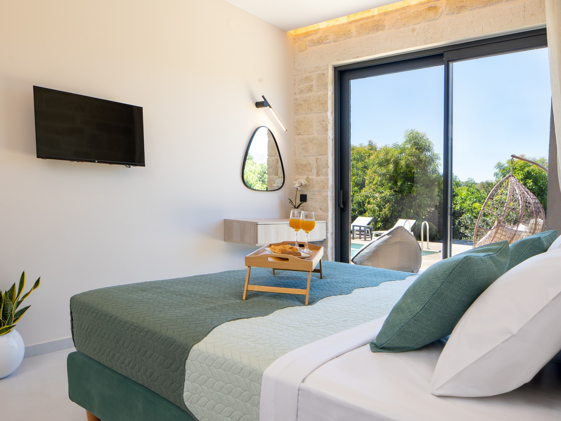 Escape to a modern retreat set in the tranquil village of Agia, surrounded by lush groves and mountain scenery. This elegant villa offers three stylish bedrooms, marble-topped bathrooms, a fully equipped kitchen, and open living areas bathed in natural light. Step outside to your private pool with a jacuzzi section, unwind in the elegant built-in lounge by the water, a perfect spot for morning coffee or evening cocktails, relax under the pergola, just 15 minutes from Chania’s vibrant old town.