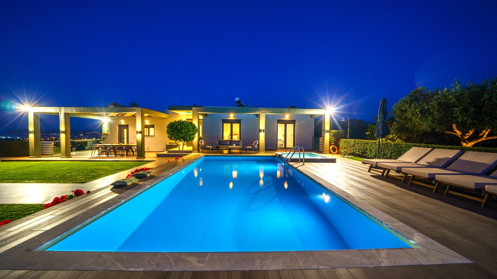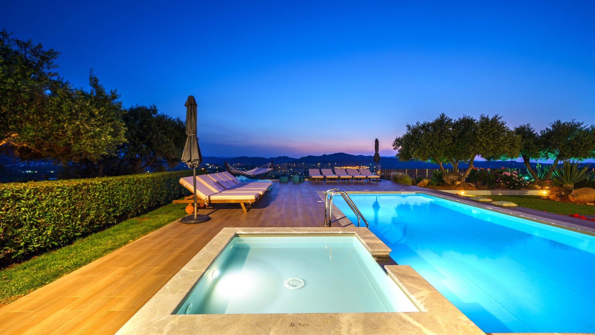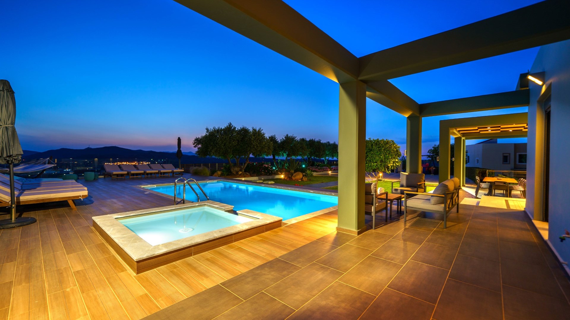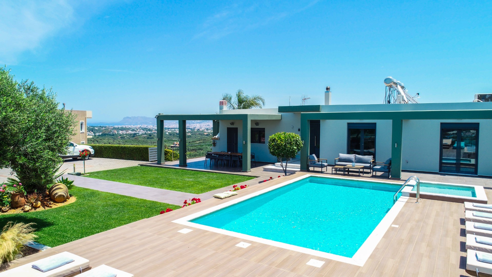 Tucked away in the serene beauty of Potistiria, Chania, just 7km from the lively city center, Mythic Olive Villa, an exquisite two-story villa, is a sanctuary of modern elegance, offering an unparalleled blend of luxury, comfort, and natural beauty. Designed to indulge the senses, every inch of this stunning retreat has been crafted with meticulous attention to detail, ensuring an unforgettable stay in the heart of Crete. Enjoy elegant interiors, expansive outdoor spaces, and premium amenities—including a large swimming pool, a separate children’s pool, a BBQ area, landscaped gardens, stylish patio furnishings, and a dedicated kids' playground. Thoughtfully designed for ultimate comfort and privacy, every detail is crafted to make your stay truly unforgettable.