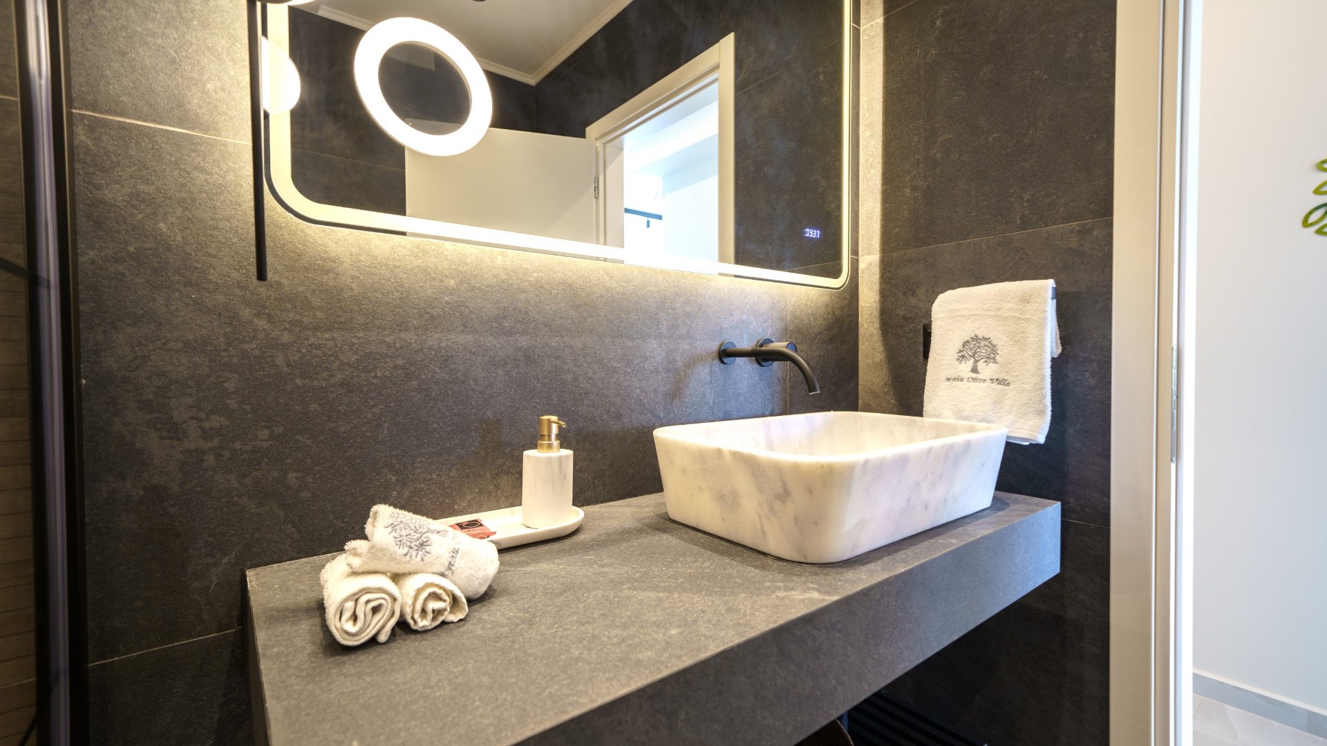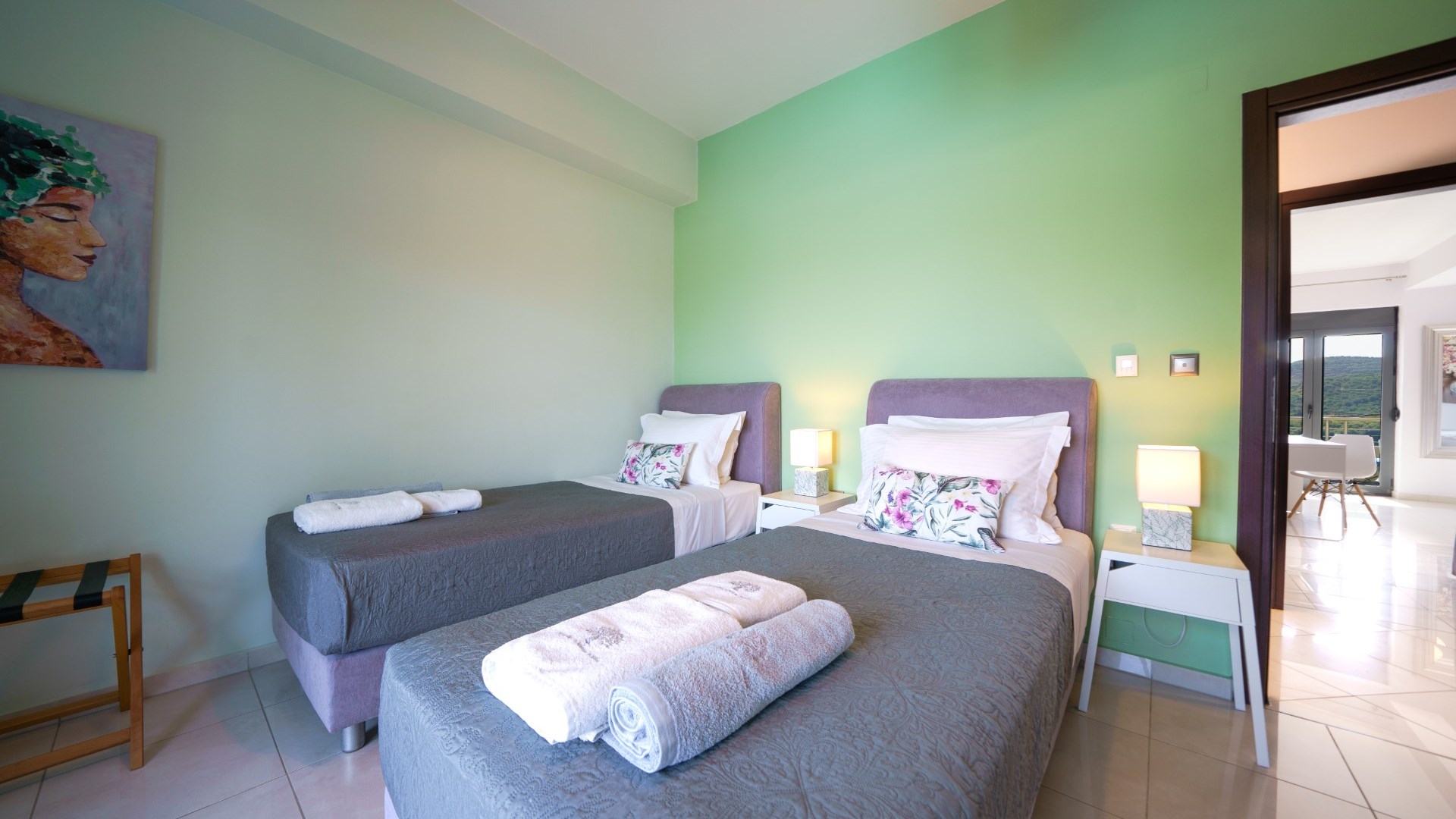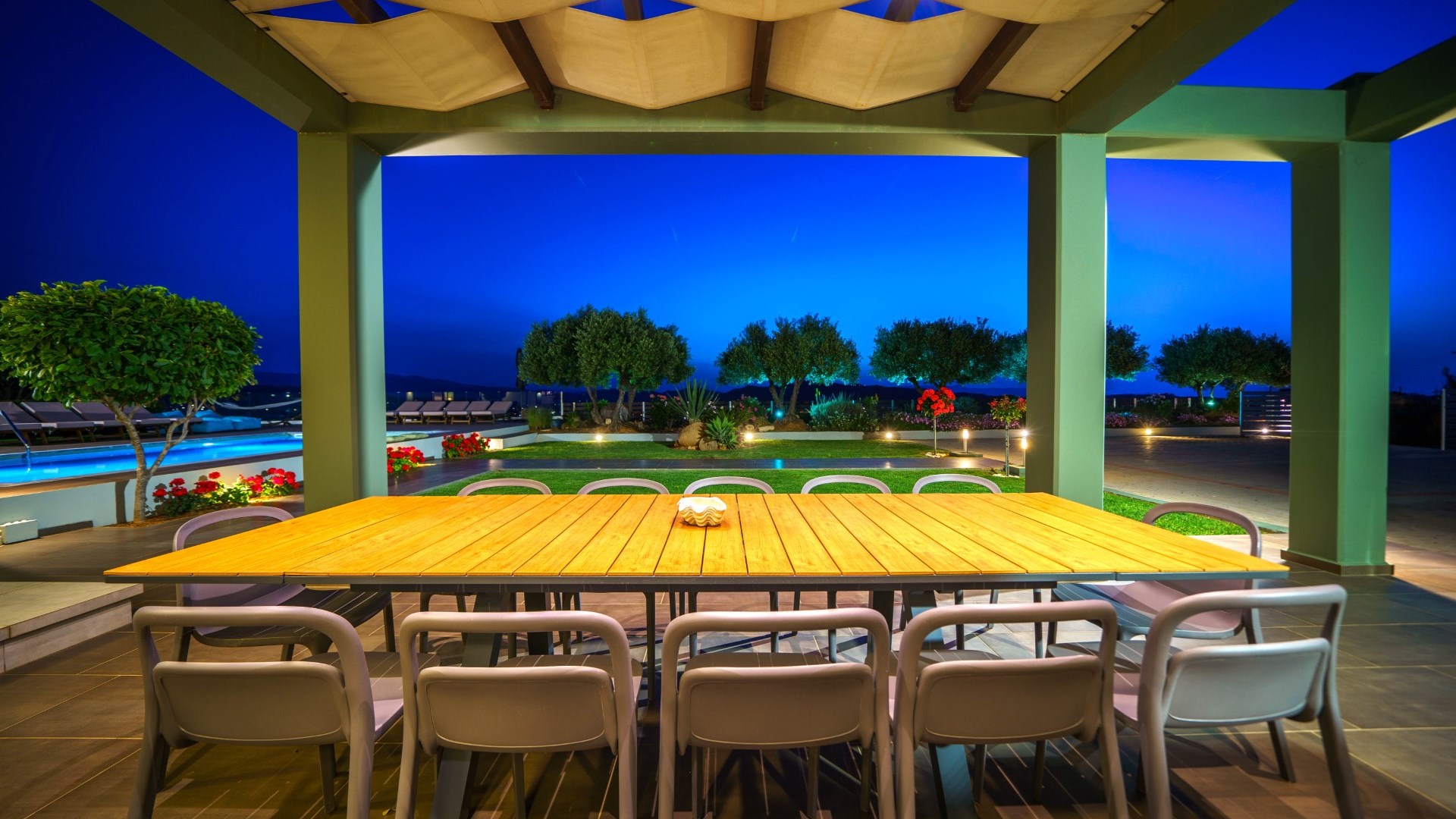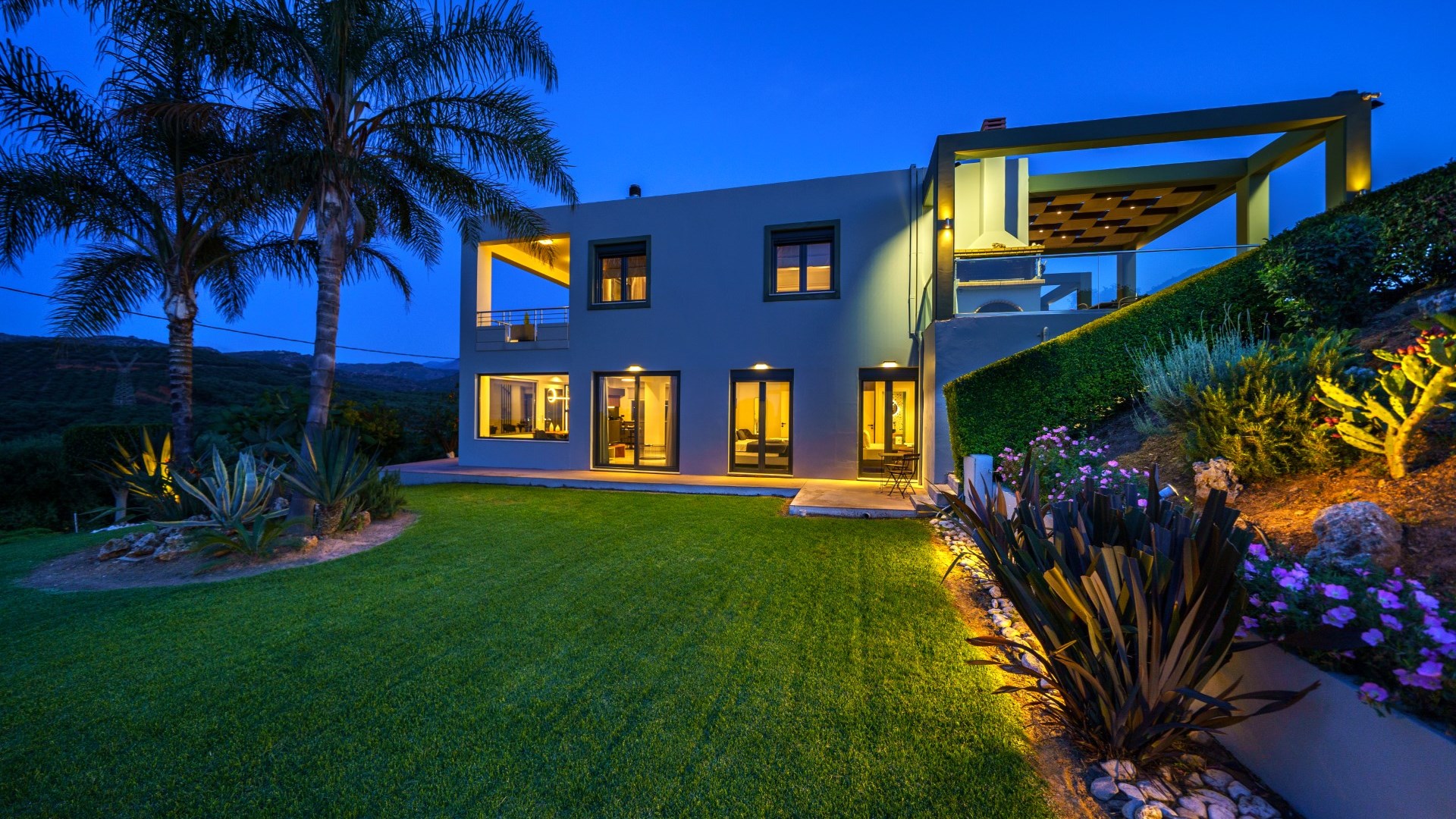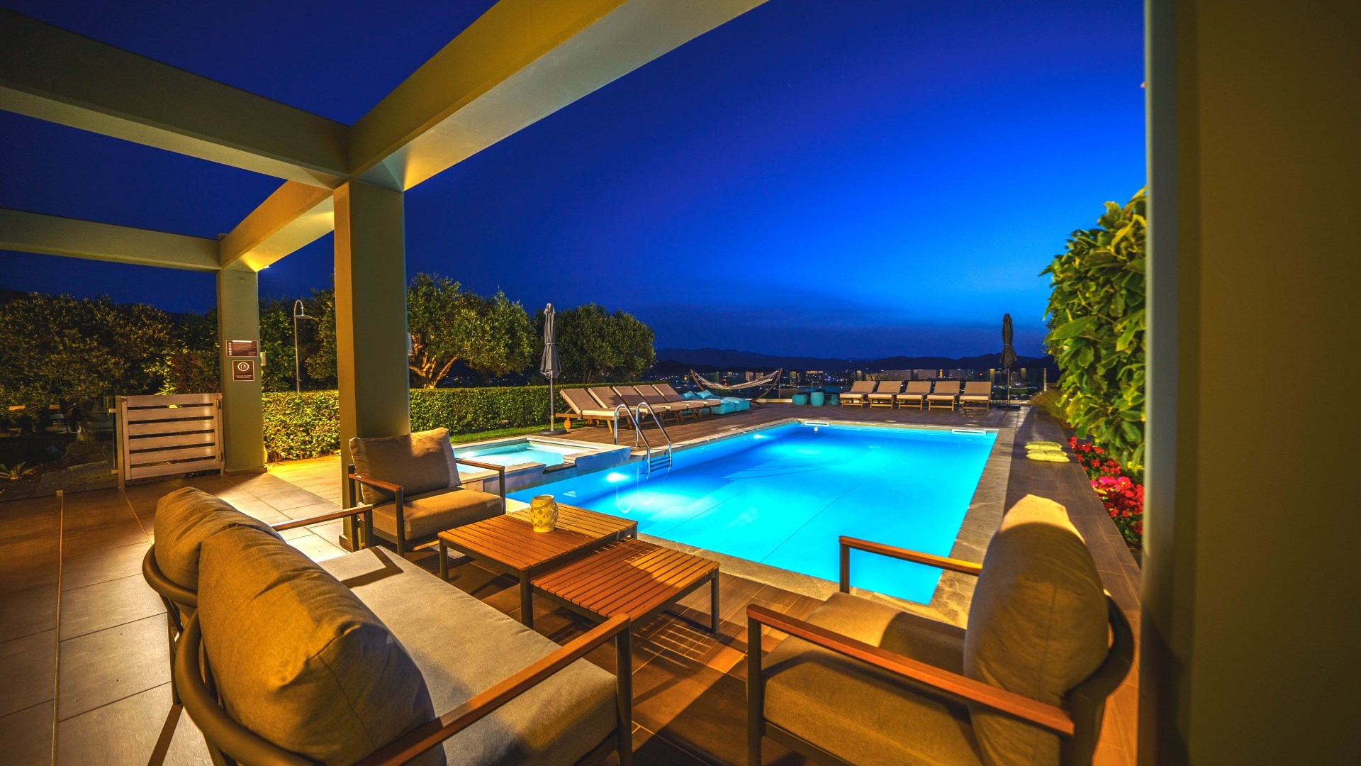 Tucked away in the serene beauty of Potistiria, Chania, just 7km from the lively city center, Mythic Olive Villa, an exquisite two-story villa, is a sanctuary of modern elegance, offering an unparalleled blend of luxury, comfort, and natural beauty. Designed to indulge the senses, every inch of this stunning retreat has been crafted with meticulous attention to detail, ensuring an unforgettable stay in the heart of Crete. Enjoy elegant interiors, expansive outdoor spaces, and premium amenities—including a large swimming pool, a separate children’s pool, a BBQ area, landscaped gardens, stylish patio furnishings, and a dedicated kids' playground. Thoughtfully designed for ultimate comfort and privacy, every detail is crafted to make your stay truly unforgettable.