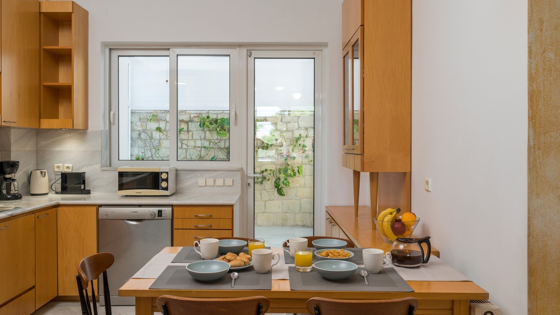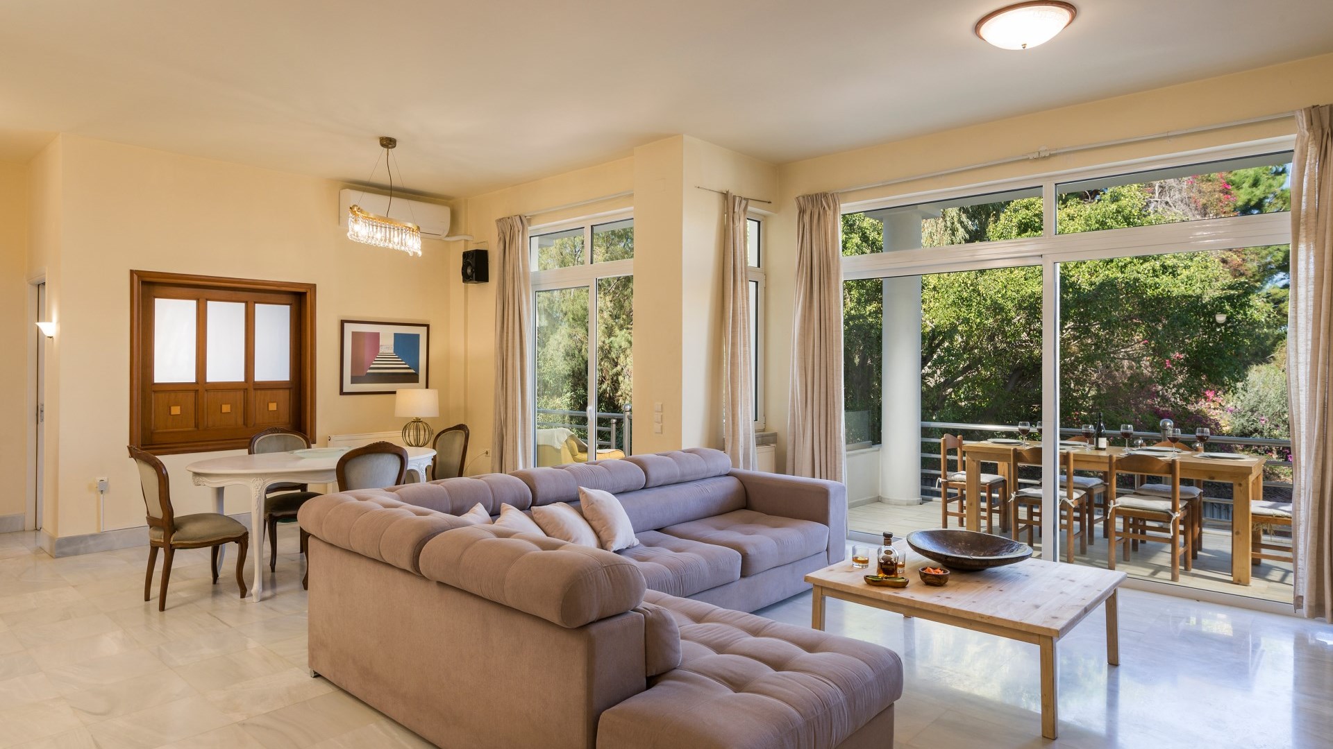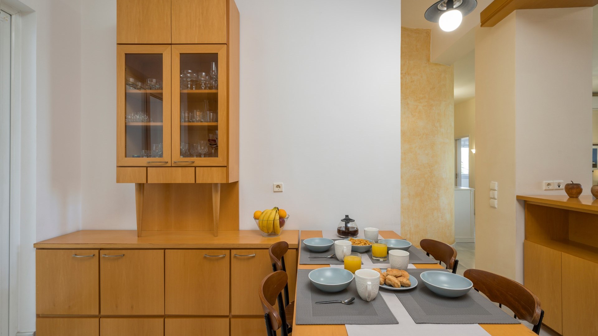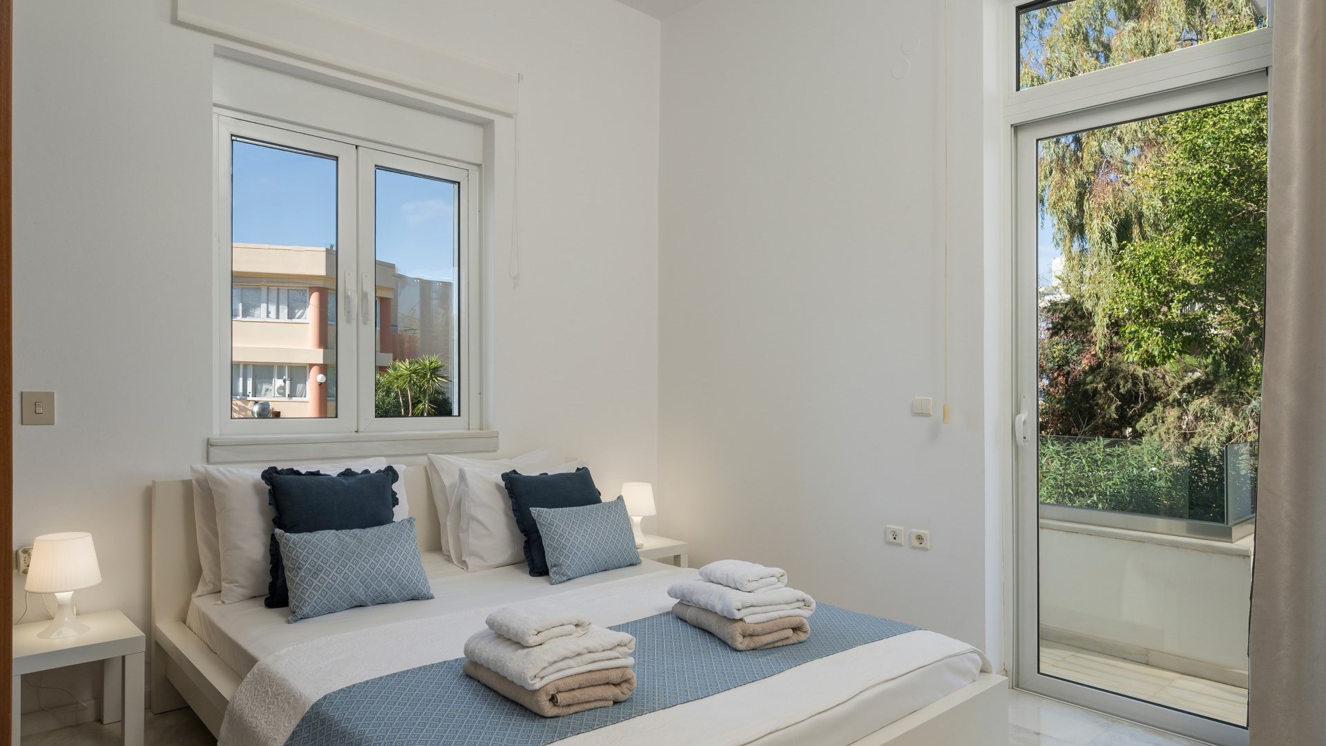 The apartment is sited in the resort area of Agii Apostoli, only 10 min. drive from Chania center! The picturesque, sandy coves of Agii Apostoli, only 5 min. walking distance from the apartment, organized with sunbeds and small beach bars, will offer you all day relaxation at the beach! The highlight of the area is the big park, with trees, a kids playground and several resting points, offered for morning and evening walks! Two big super markets, mini markets, pharmacies, cafes, restaurants and all kind of shops are offered also in walking distance!