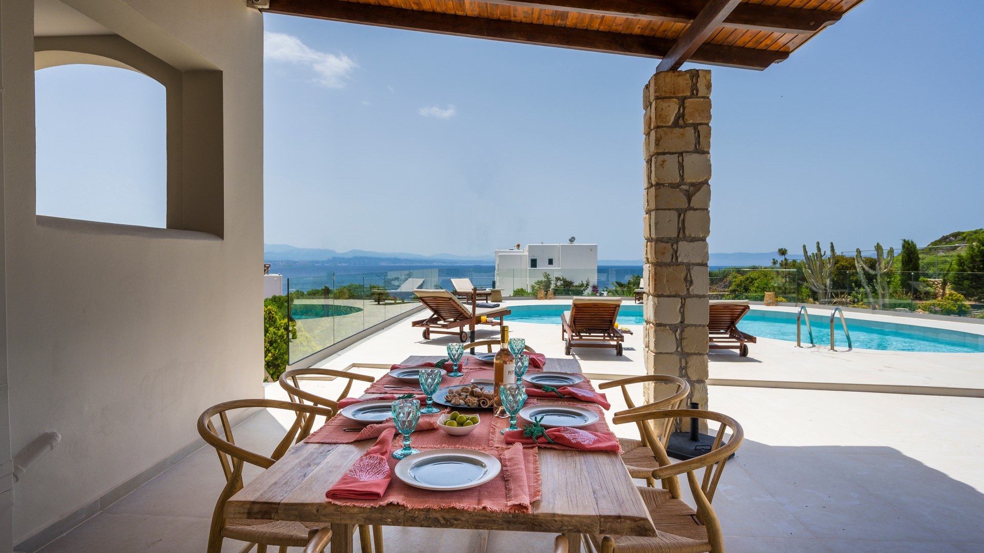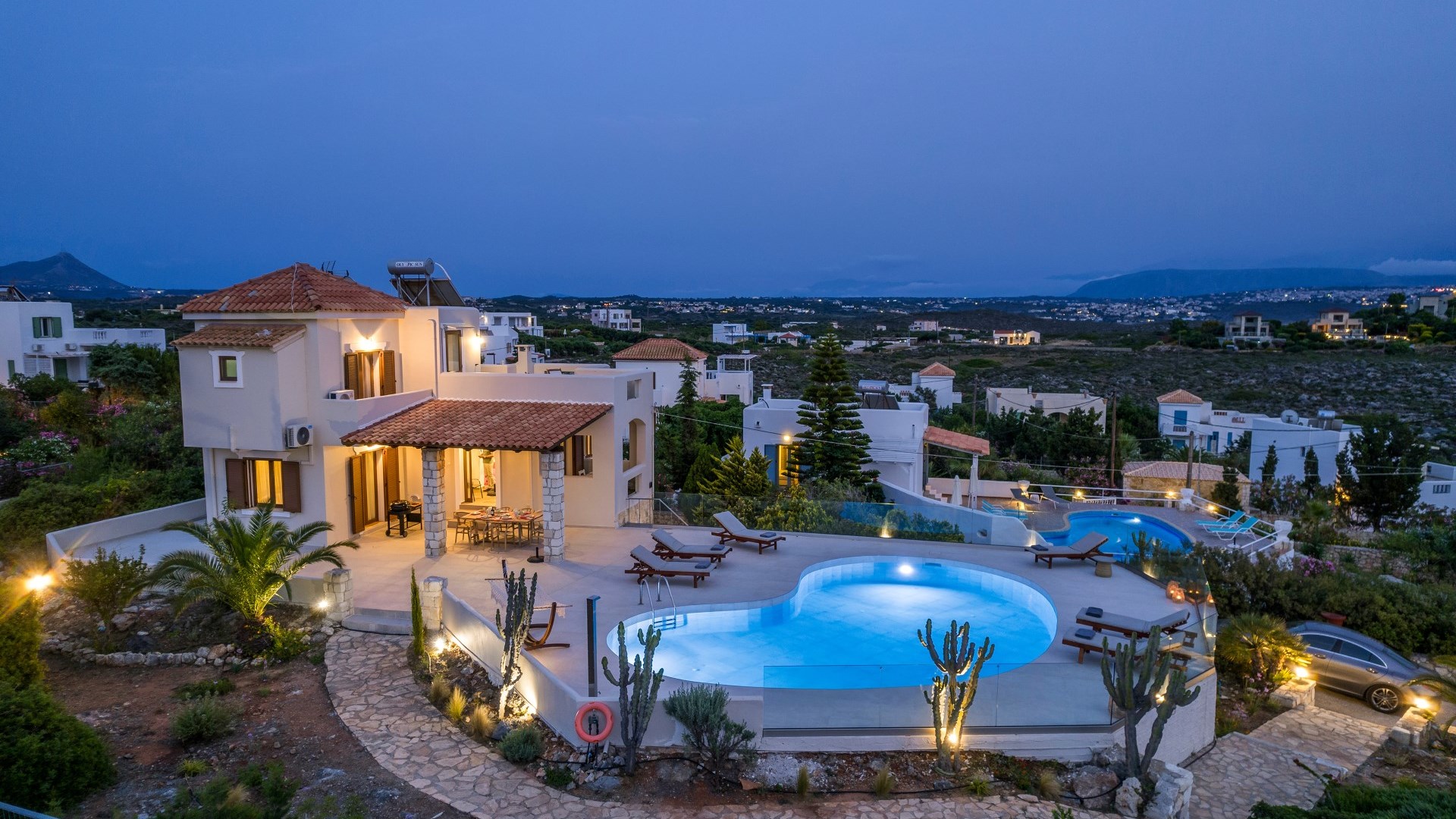 Unique benefits of the villa are the Heated Pool, the wild Cretan landscape, the amazing panoramic sea view, the all-day sunny areas, and the wonderful Sunsets you can watch every night from the villas Pool area!