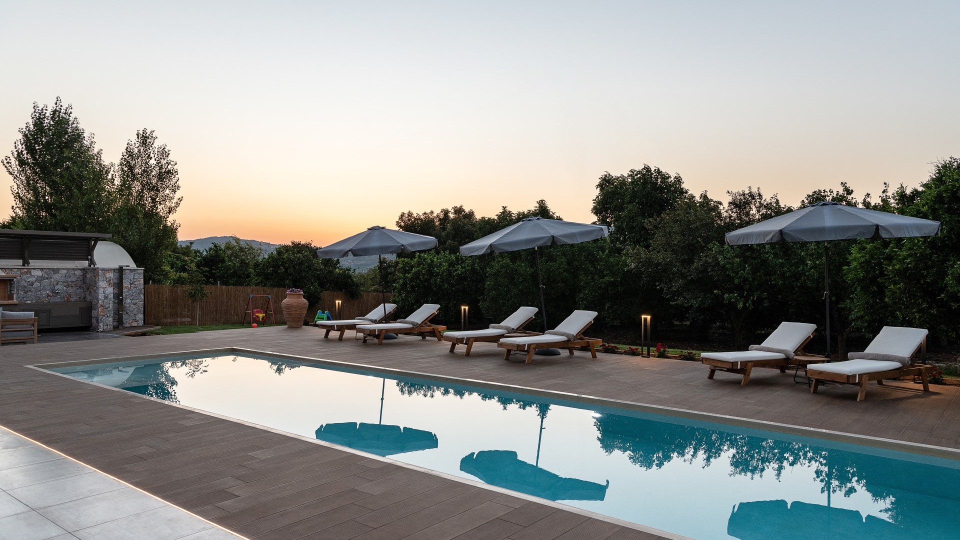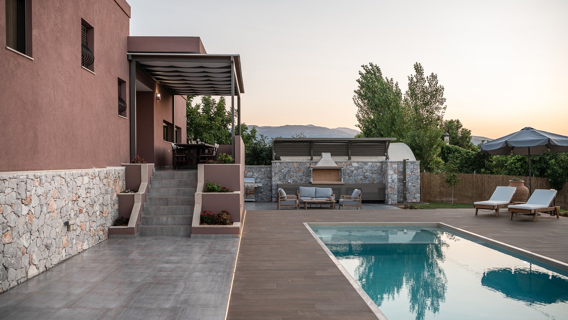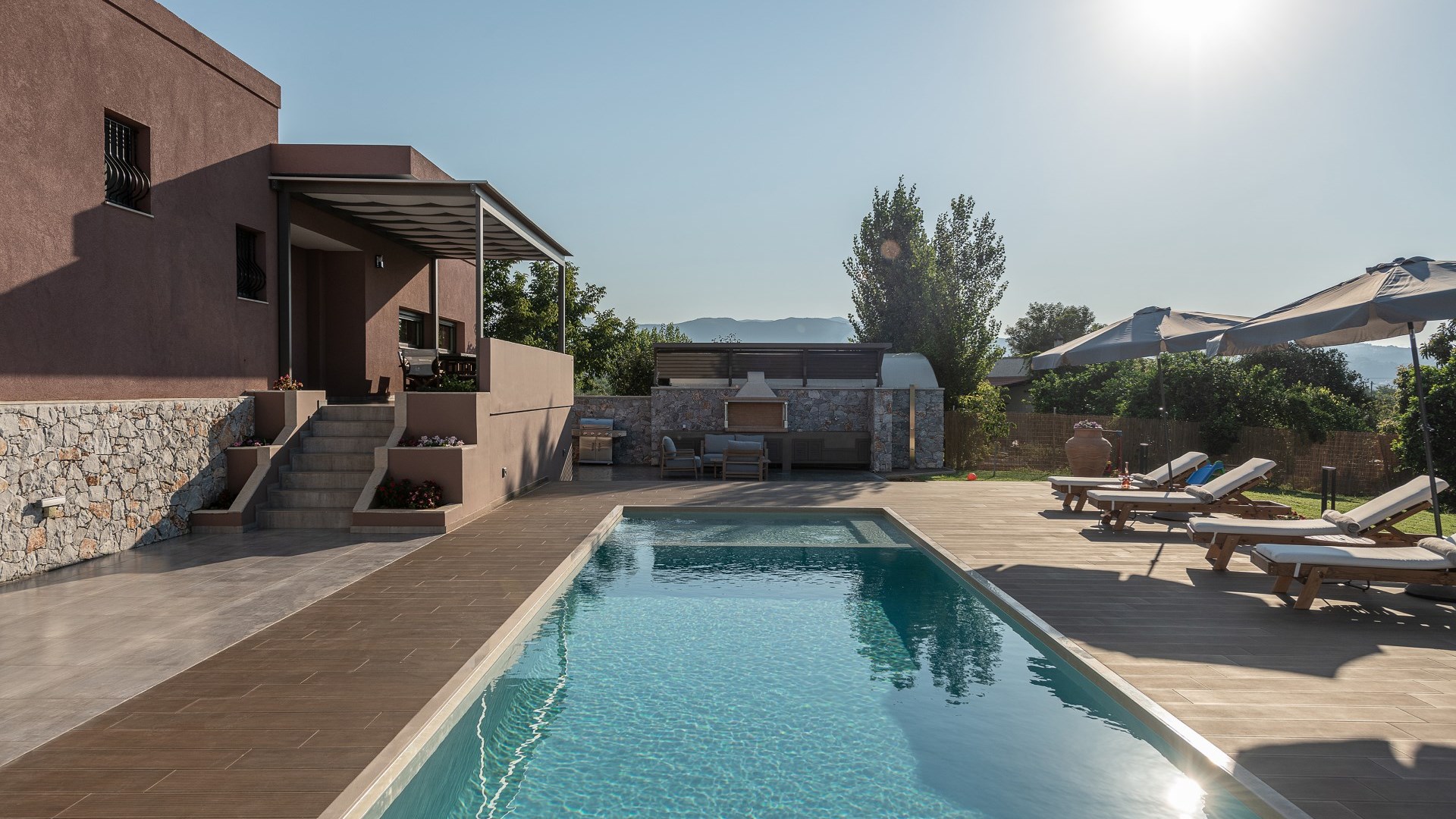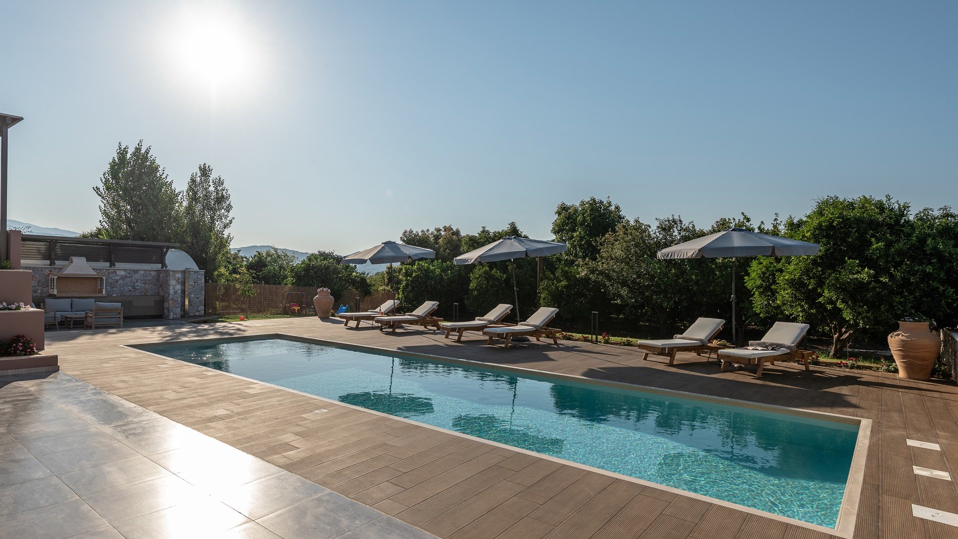 Villa Enny, a modern villa of high aesthetic, constructed with top quality materials in every space and all the contemporary facilities, is the unique holiday retreat that all guests seek. Situated in a private fenced land in Agia village, only 15 min. drive from Chania city, it combines the tranquility of nature with luxurious holidays. The grand heated pool with children's section, the gas and charcoal BBQ, the playground, the high-quality interior and exterior furnishing are only some of the benefits of this one-of-a-kind villa!