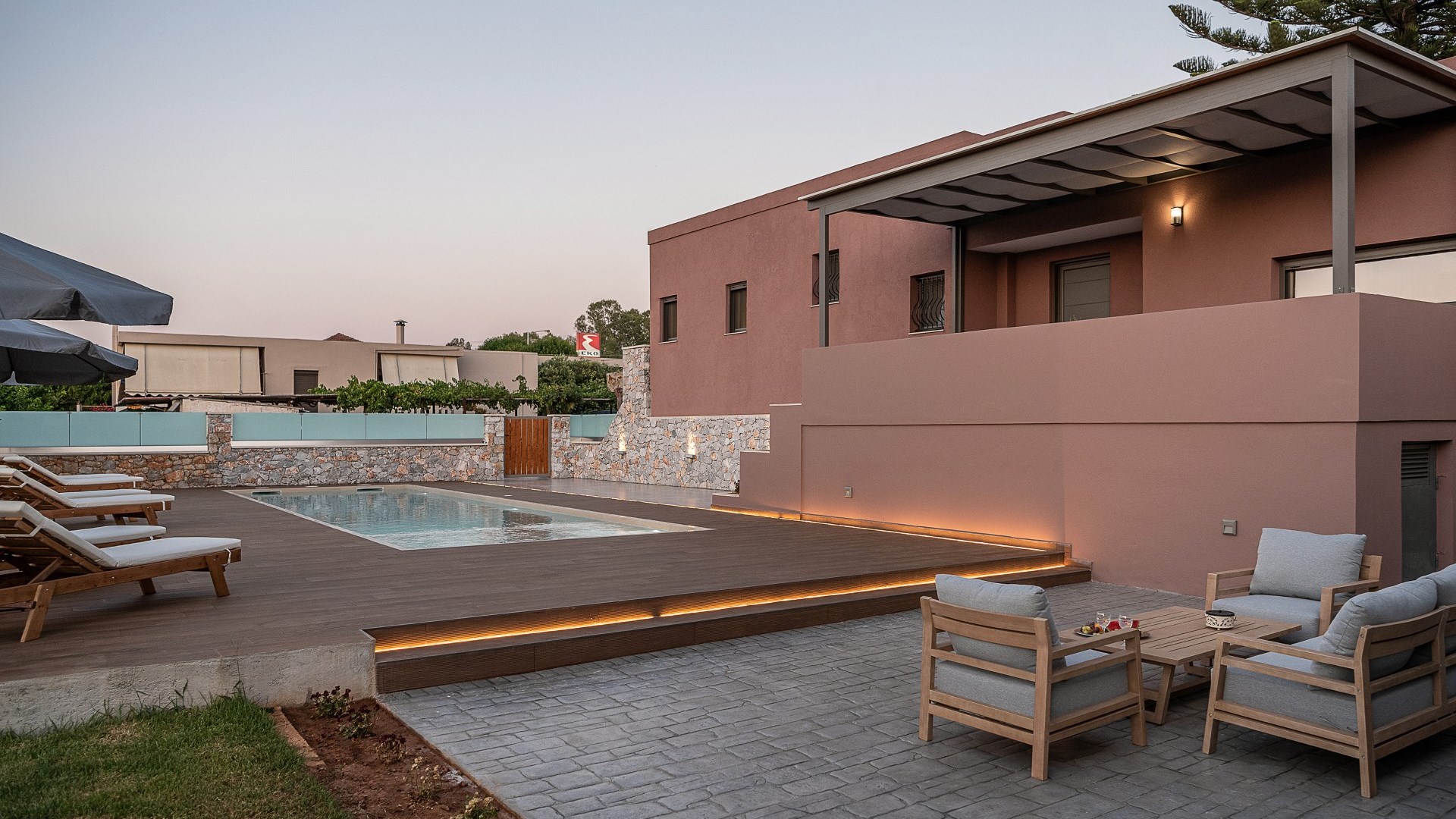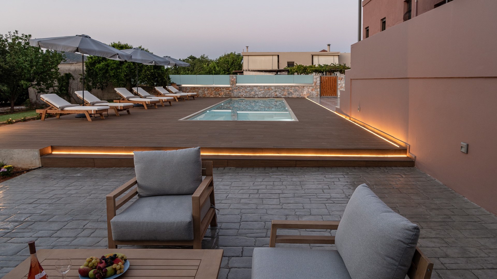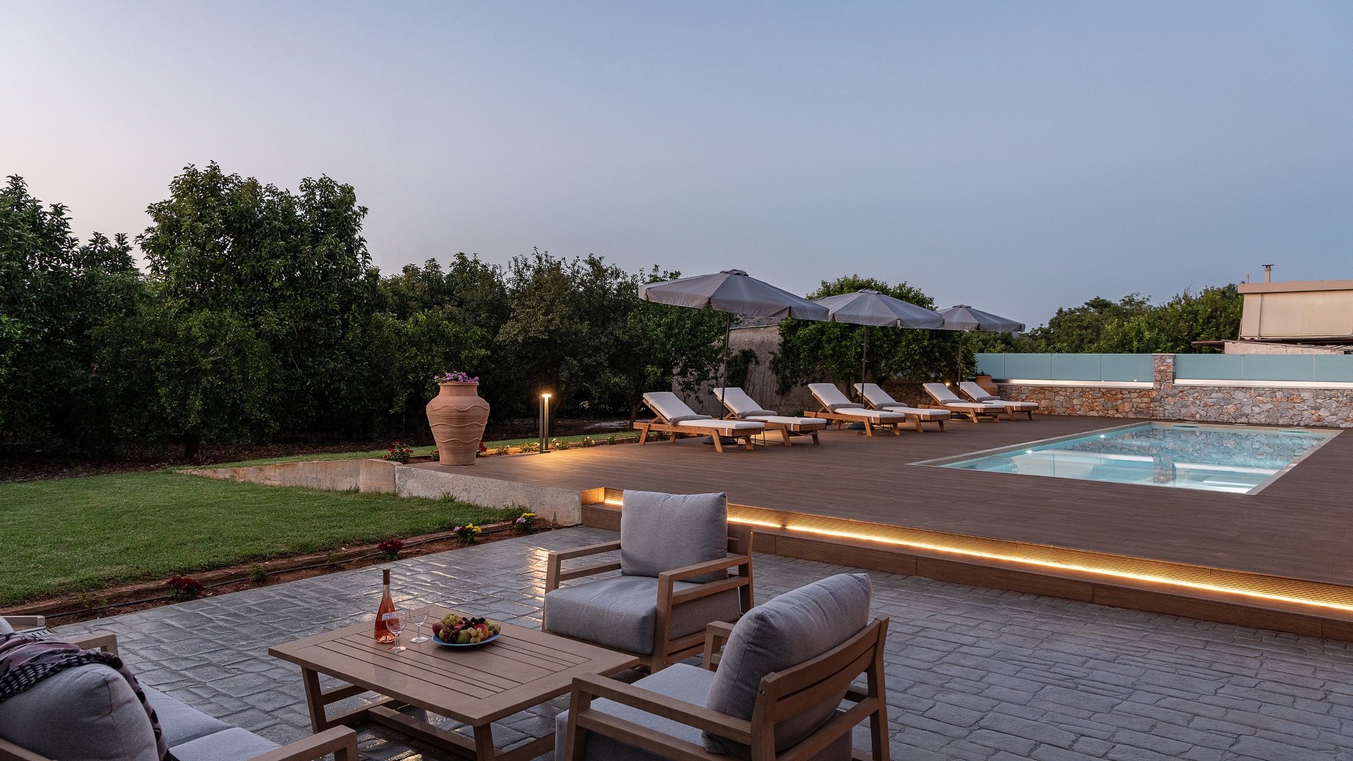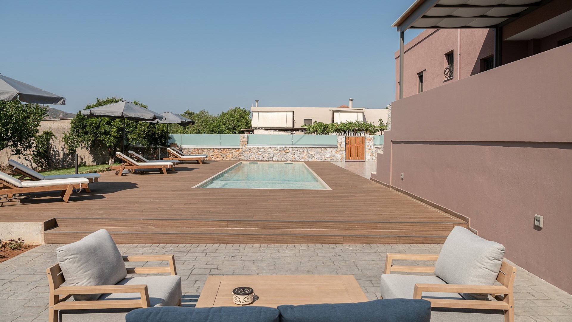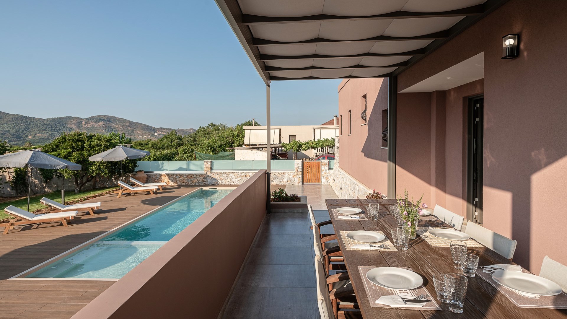 Villa Enny, a modern villa of high aesthetic, constructed with top quality materials in every space and all the contemporary facilities, is the unique holiday retreat that all guests seek. Situated in a private fenced land in Agia village, only 15 min. drive from Chania city, it combines the tranquility of nature with luxurious holidays. The grand heated pool with children's section, the gas and charcoal BBQ, the playground, the high-quality interior and exterior furnishing are only some of the benefits of this one-of-a-kind villa!