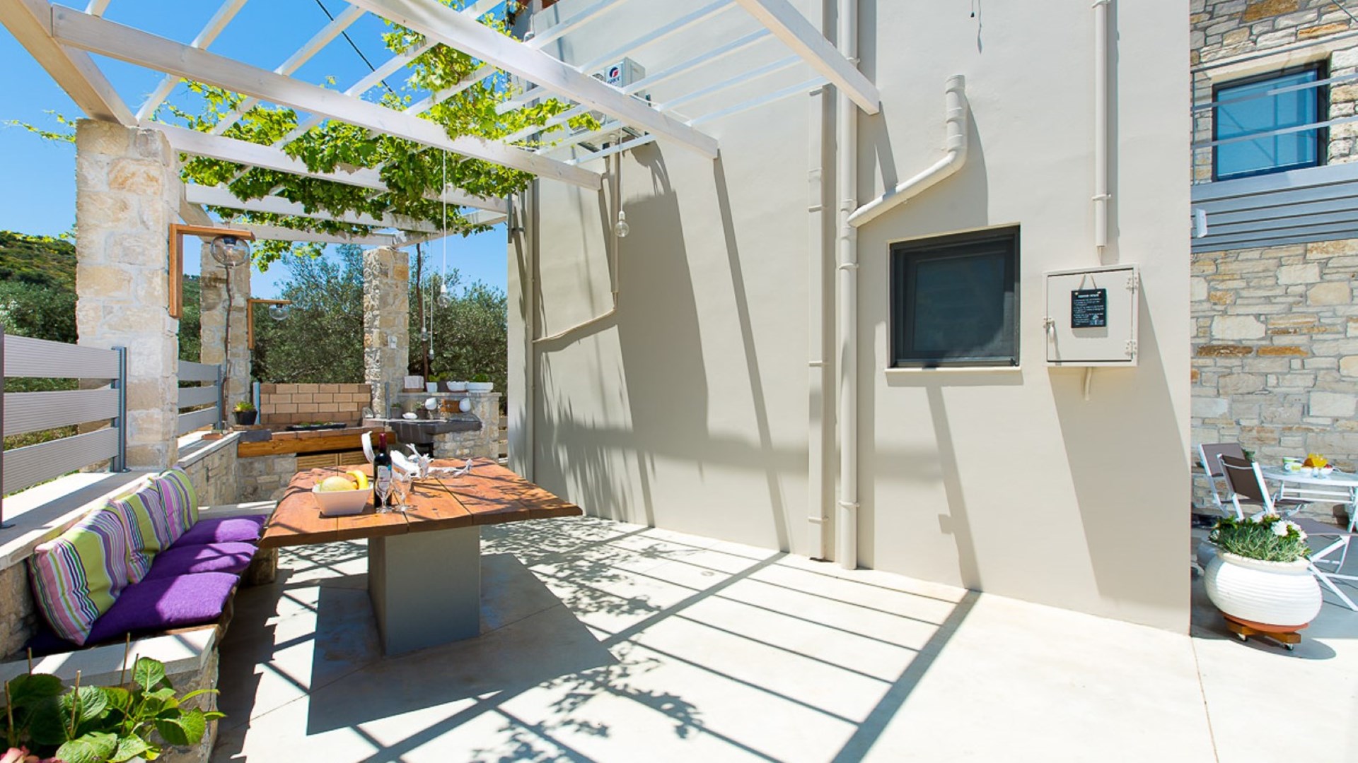 The villa is situated on the outskirts of the quiet and peaceful Veni village, between the seafront village of Kolymvari and the small town of Kissamos (Kasteli). In Kolymvari (3km.), you will find everything you will need during your holidays: supermarkets, cafes, shops, banks, traditional taverns and a beautiful beach! For a night out, Platanias and Agia Marina (only 20 min. drive) are the best options, as they feature nightclubs, beach bars, many cafes, tourist shops and restaurants.