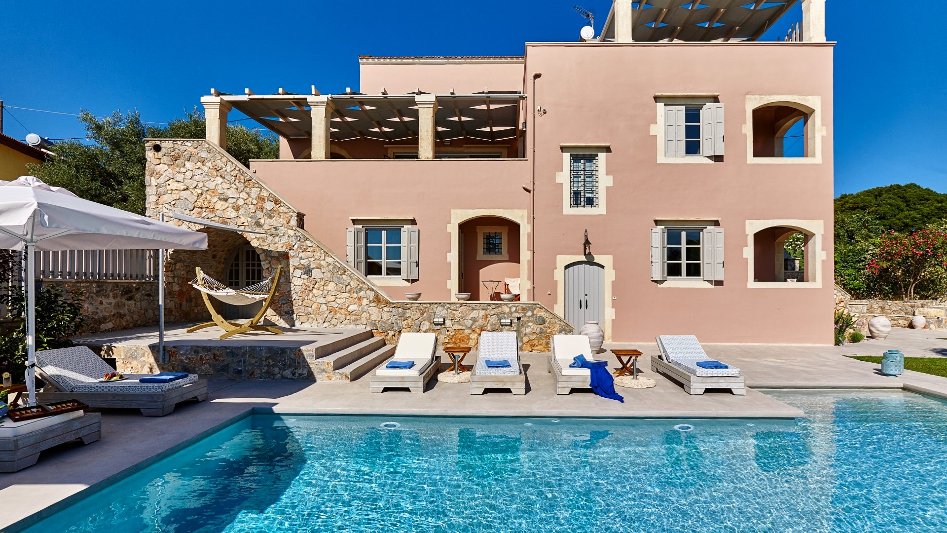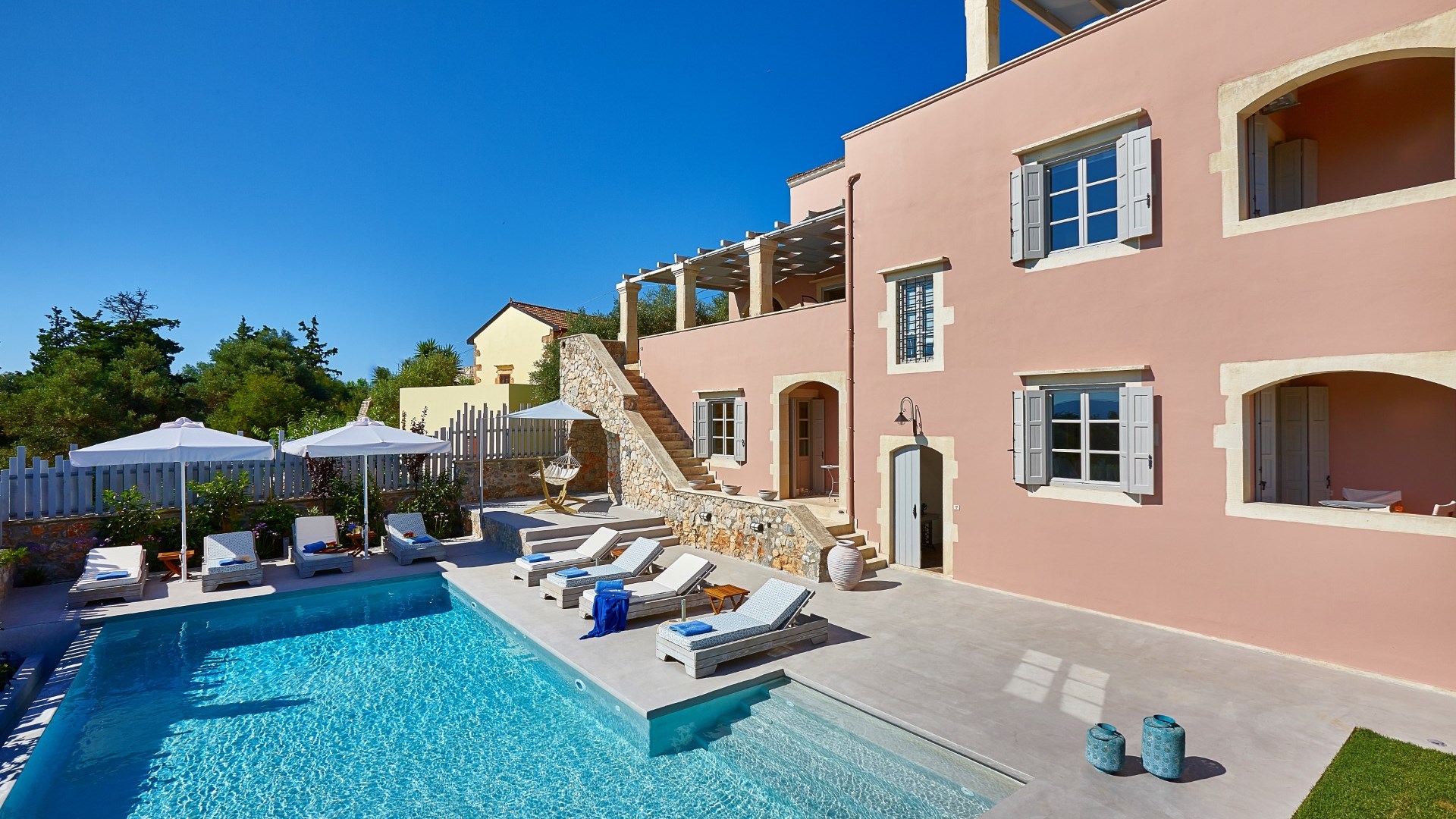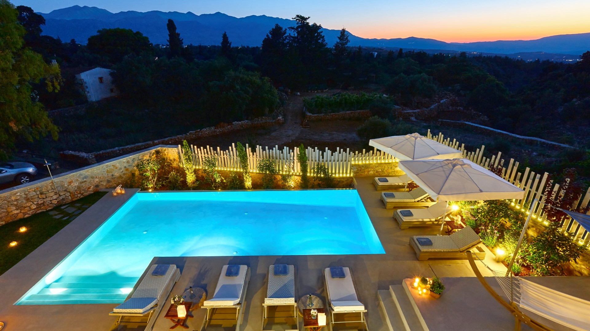 An extraordinary holiday villa with Private Heated Pool, in the picturesque village of Xirosterni in Apokoronas area, offering enchanting views of the bay of Almyrida and the imposing White Mountains! What makes this villa unique is the blend of the traditional design of a Cretan mansion, with the amenities of a luxurious villa of really high standards! The luxurious gym and the sauna, as well as the Hot Tub on the upper balcony are unique amenities that only a few villas have!