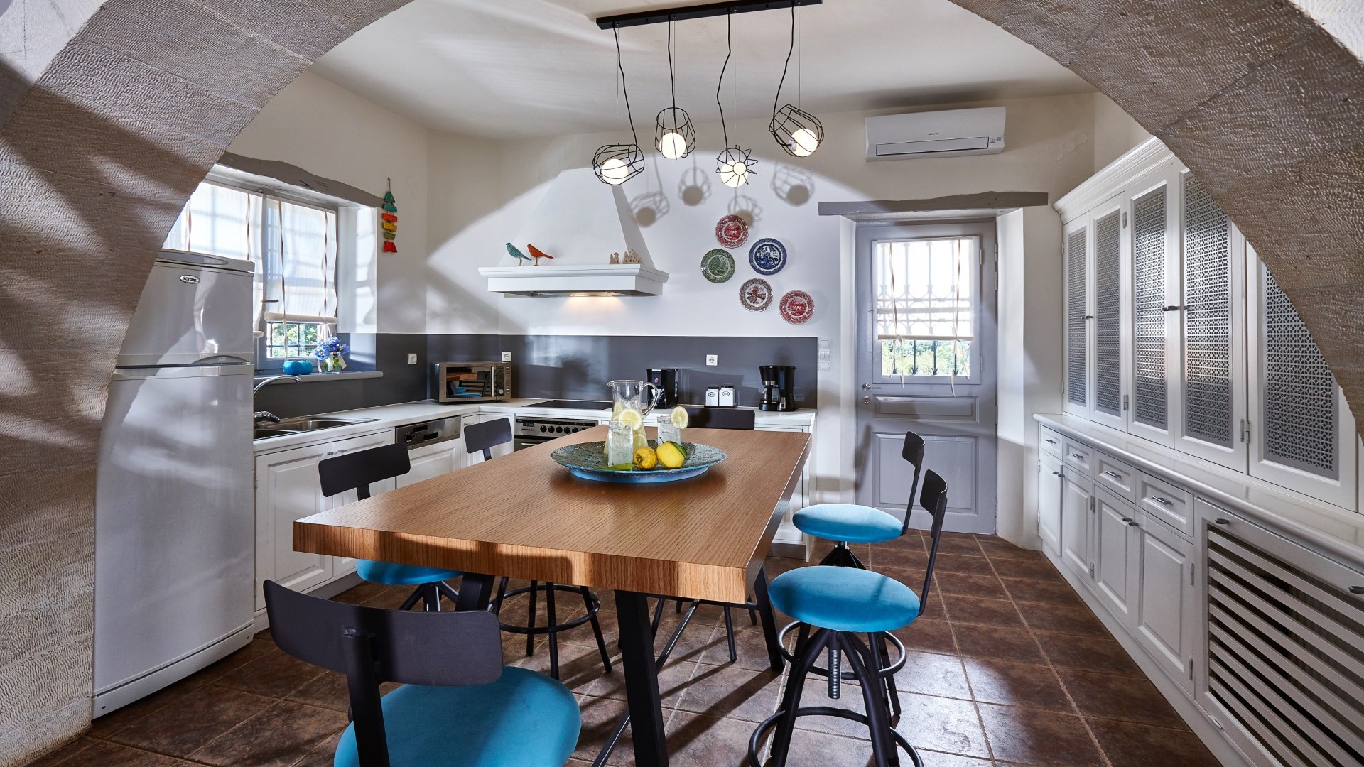 Based in the picturesque, traditional village of Xirosterni in Apokoronas area, 30 km. from Chania, our villa offers a quiet village environment to their guests, as well as incredible views of White Mountains sierras and the wonderful bay of Almyrida! Within 5 km., the popular village of Almyrida, with its long coast, divided into two beaches, awaits you to offer all the amenities you may need on holidays: supermarkets, banks, cafes, taverns, bars, shops and water sports at the beautiful beach! For even more amenities, the bigger village of Kalyves (9 km.) awaits you to offer even more amenities and one more wonderful beach! During your holidays, you should definitely explore the picturesque well-preserved villages of Apokoronas with splendid natural sites and excellent taverns, serving local recipes!